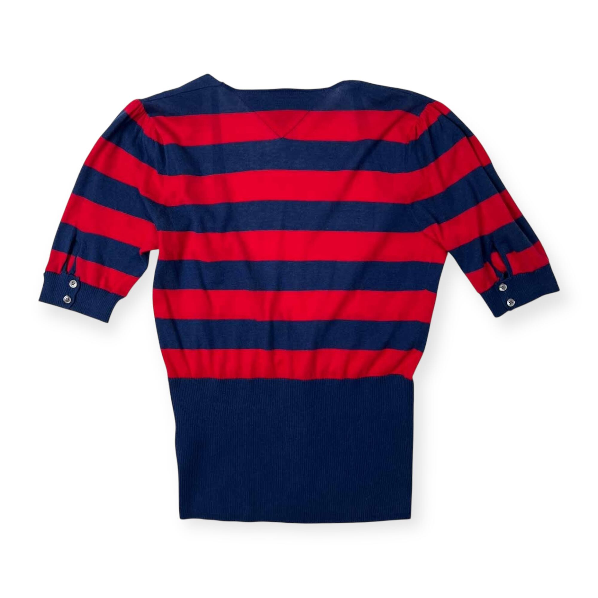 TOMMY HILFIGER トミー ヒルフィガー ボーダー柄 ハイゲージニット 半袖 カーディガン カットソー S /薄手/コットン