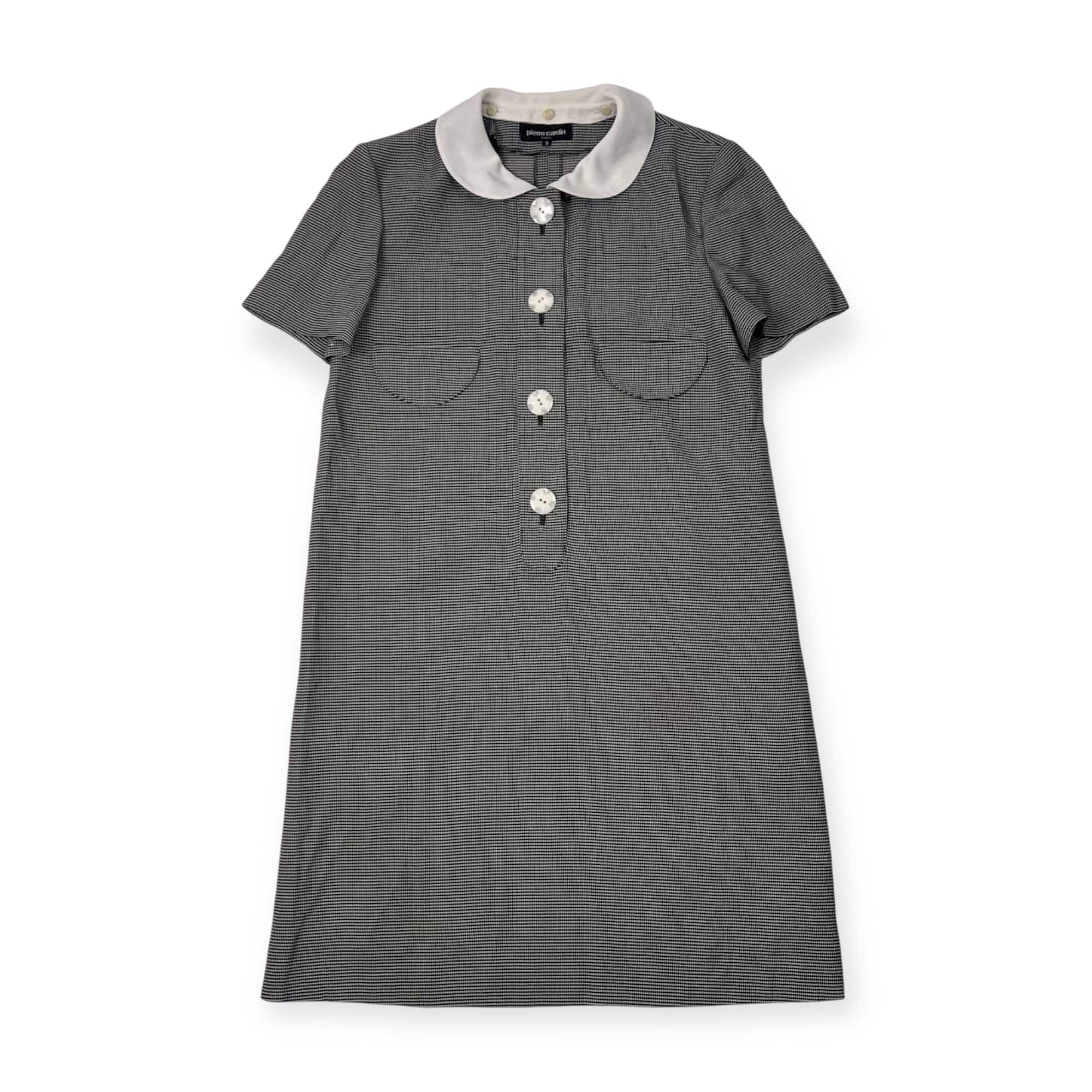 pierre cardin ピエールカルダン 丸襟付き ハーフボタン 総柄 半袖 ワンピース 9/ブラック レディース ビンテージ