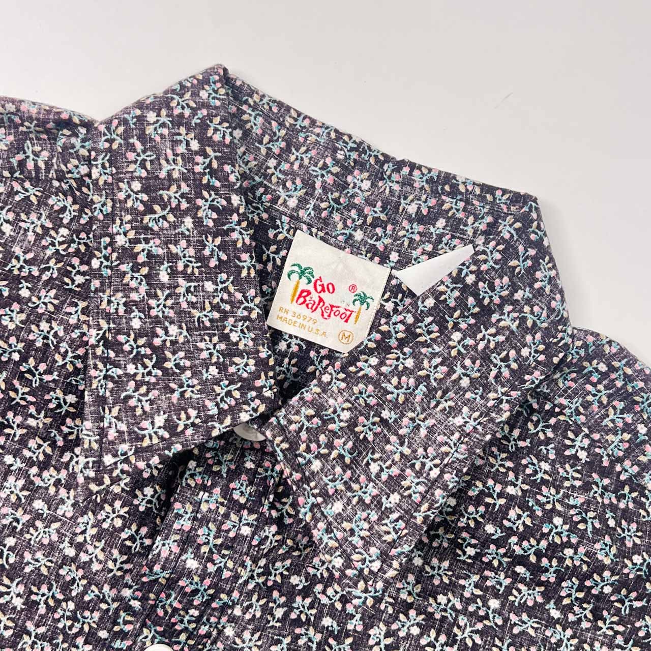 USA製 Go Barefoot ゴーベアフット 裏地使い 花柄 ハーフボタン 半袖 アロハシャツ M/マルチ メンズ