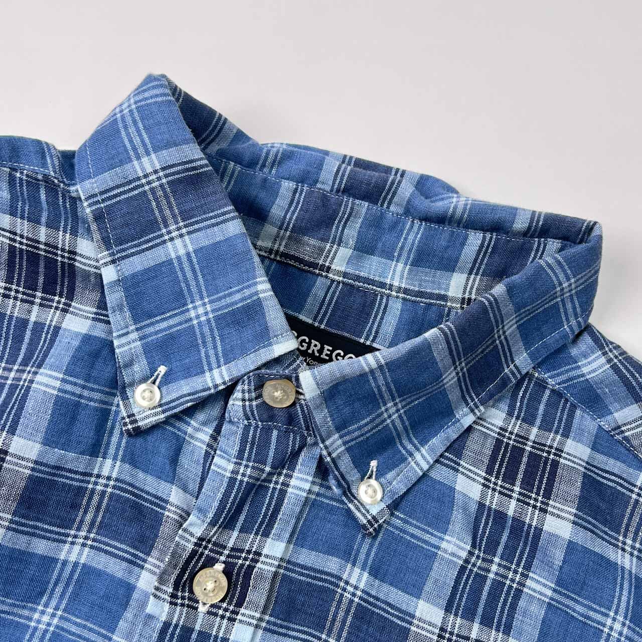 リネン100% MCGREGOR マクレガー チェック BD ボタンダウン 長袖シャツ LL/ブルー系 メンズ