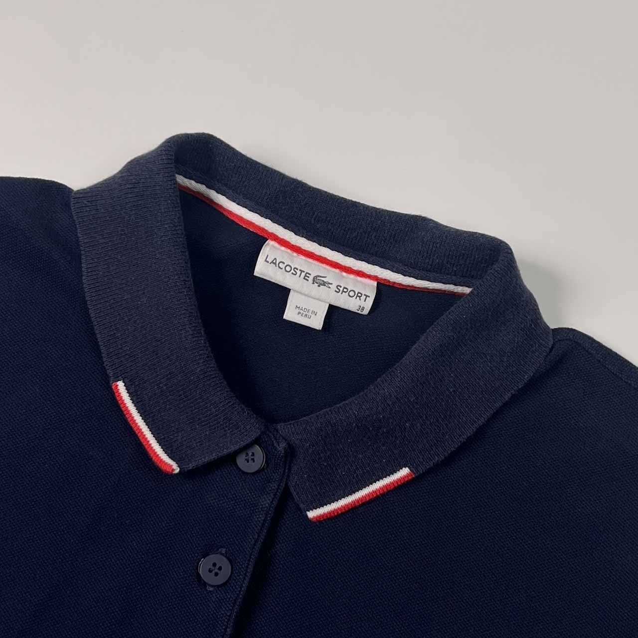 LACOSTE SPORT ラコステ スポーツ トリコロール ワニ 鹿の子 半袖 ポロシャツ 38/ネイビー レディース