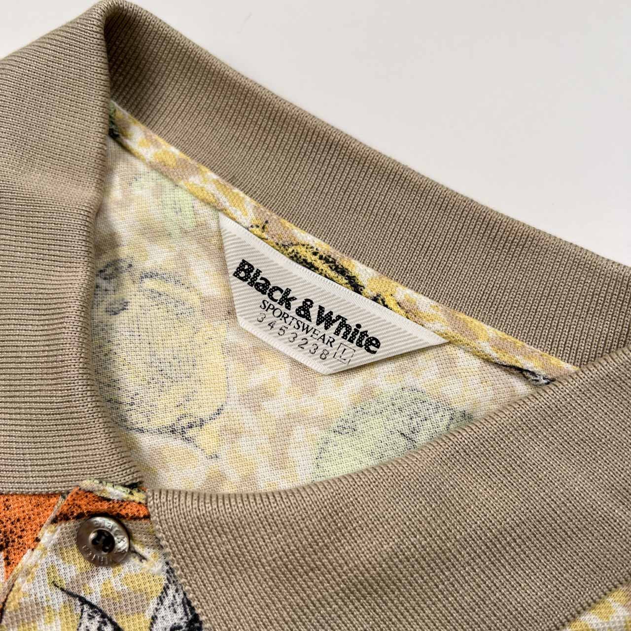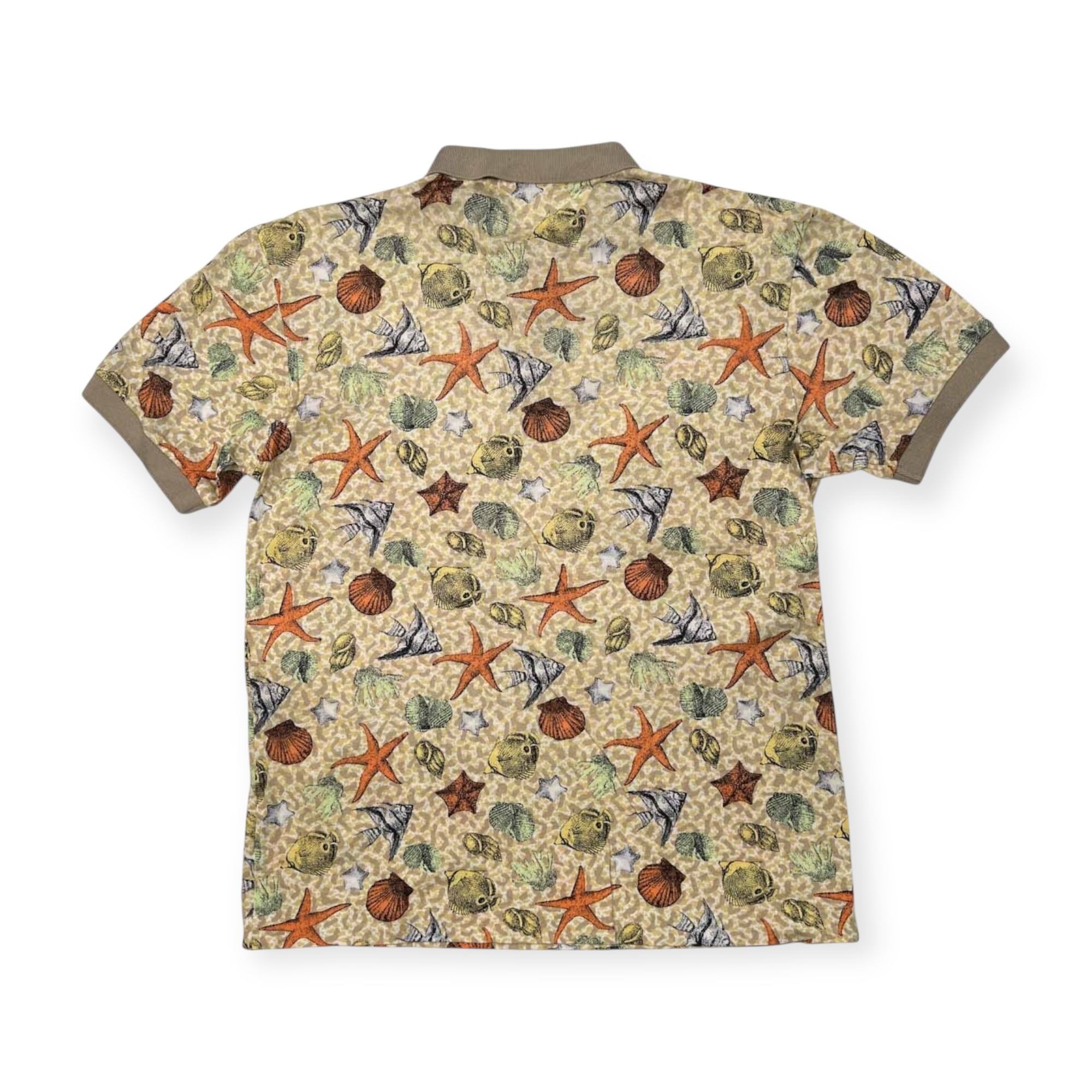 Black&White ブラック&ホワイト 魚&ヒトデ&貝殻柄 総柄 半袖 ポロシャツ サイズ L /鹿の子コットン/メンズ/ゴルフ/マルチ