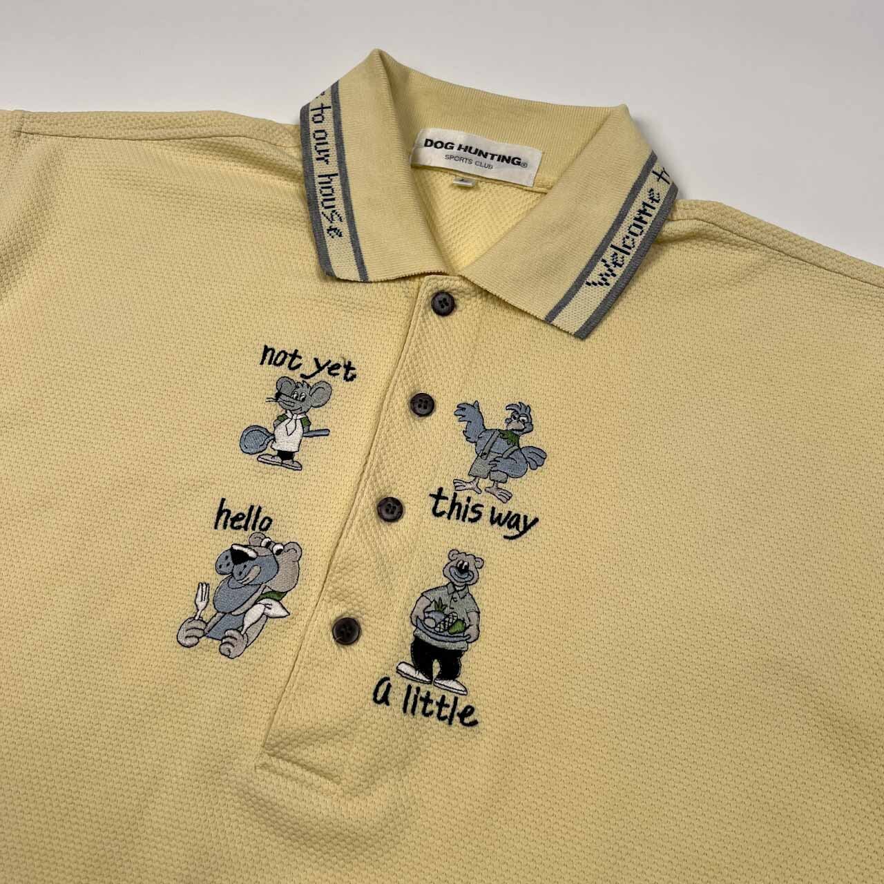 DOGHUNTING ドッグハンティング キャラ刺繍 半袖 ポロシャツ サイズ L /メンズ/ライトイエロー系