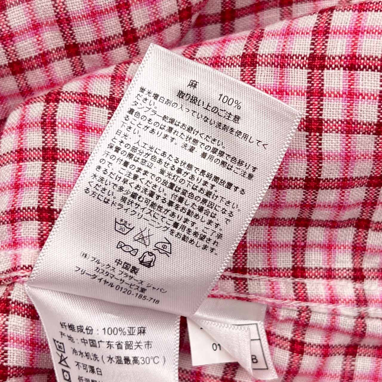 リネン100% Brooks Brothers 346 ブルックスブラザーズ SLIM FIT チェック BD ボタンダウン 半袖シャツ M/ピンク系 メンズ