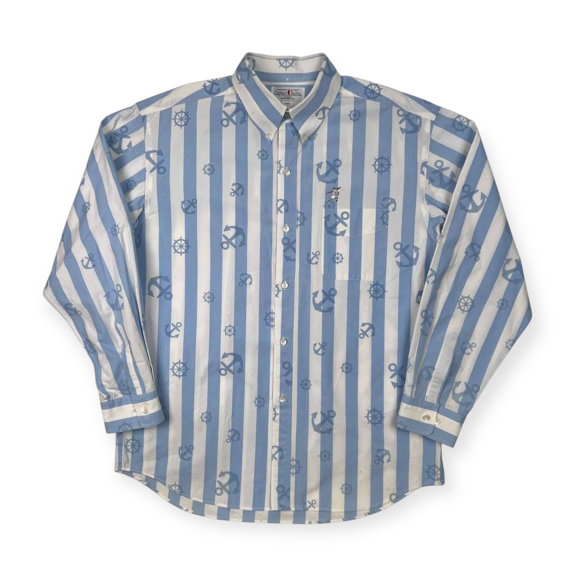 CAPTAIN SANTA キャプテンサンタ マリン ストライプ柄 BD 長袖シャツ サイズ XL /水色×ホワイト
