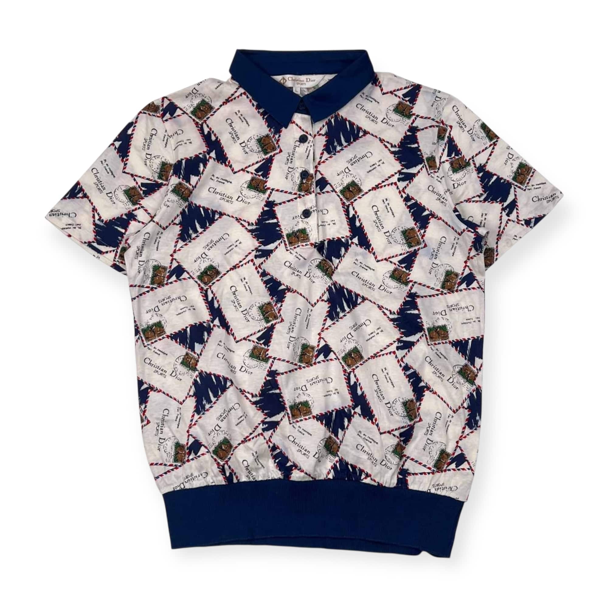 90s Christian Dior SPORTS クリスチャンディオール スポーツ ポストカード デザイン 半袖 ポロシャツ L/マルチ レディース ビンテージ