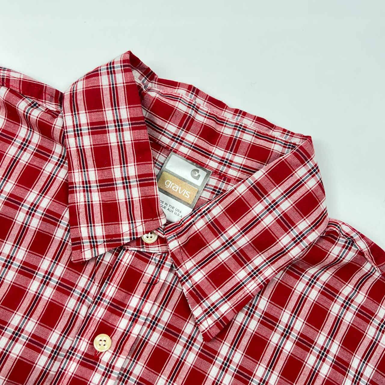USA製 gravis グラビス チェック 半袖シャツ L/レッド系 メンズ スケート