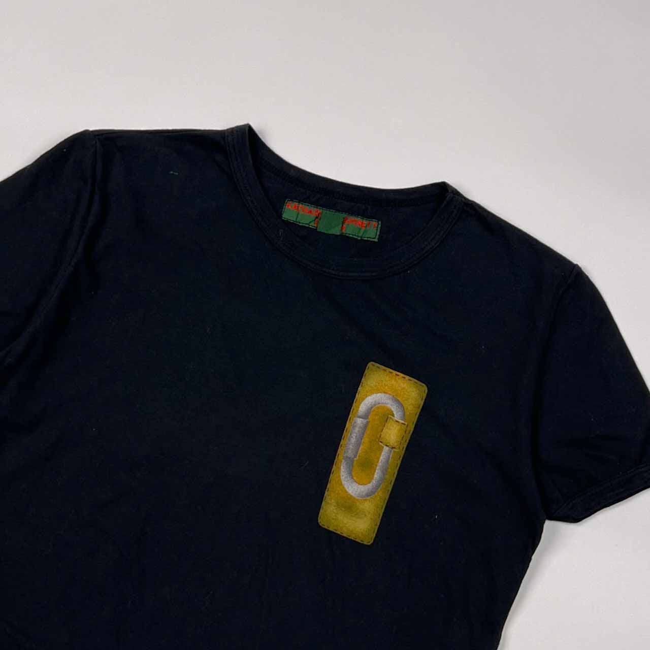 90s イタリア製 KATHARINE HAMNETT DENIM キャサリンハムネット ワンポイント ショート丈 半袖 Tシャツ カットソー S/ブラック レディース