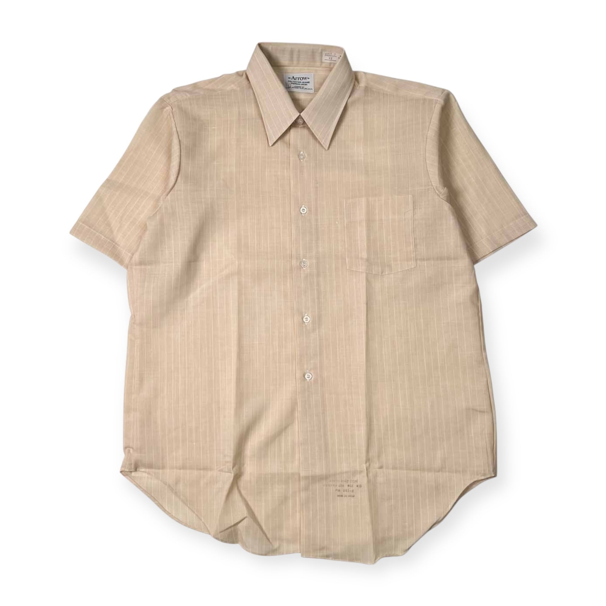 60s 70s リネン混 Arrow アロー PERMA-IRONタグ ストライプ 半袖シャツ /ベージュ系 メンズ ビンテージ