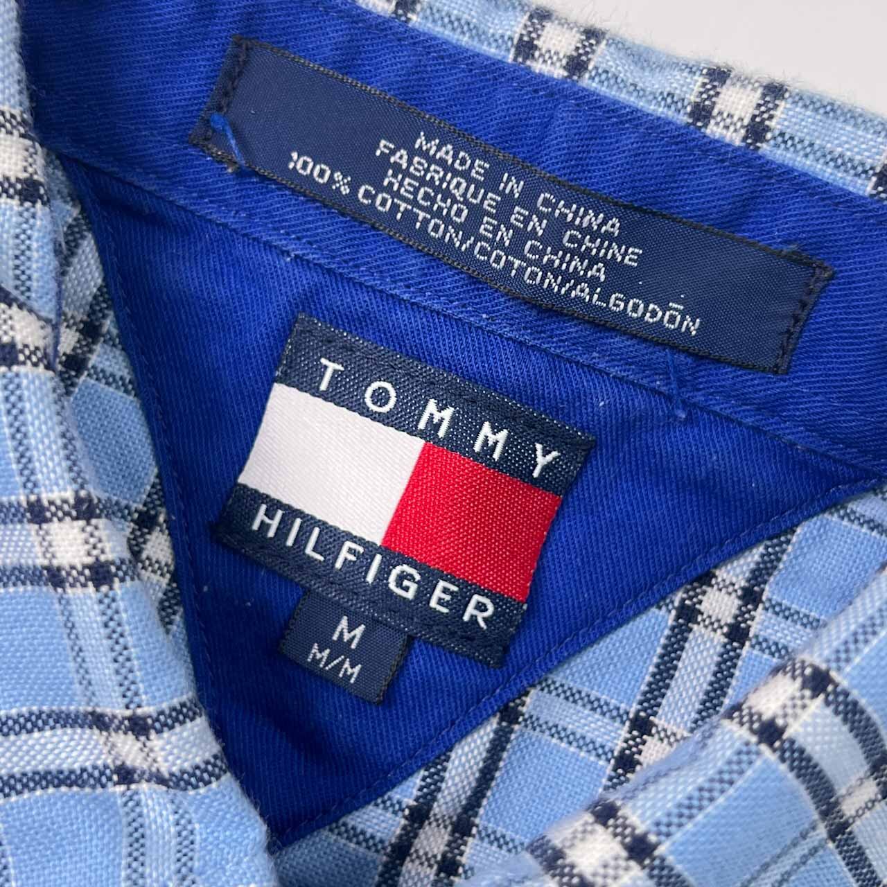 90s TOMMY HILFIGER トミー ヒルフィガー チェック BD ボタンダウン オックスフォード 半袖シャツ M/ブルー系 メンズ ビンテージ