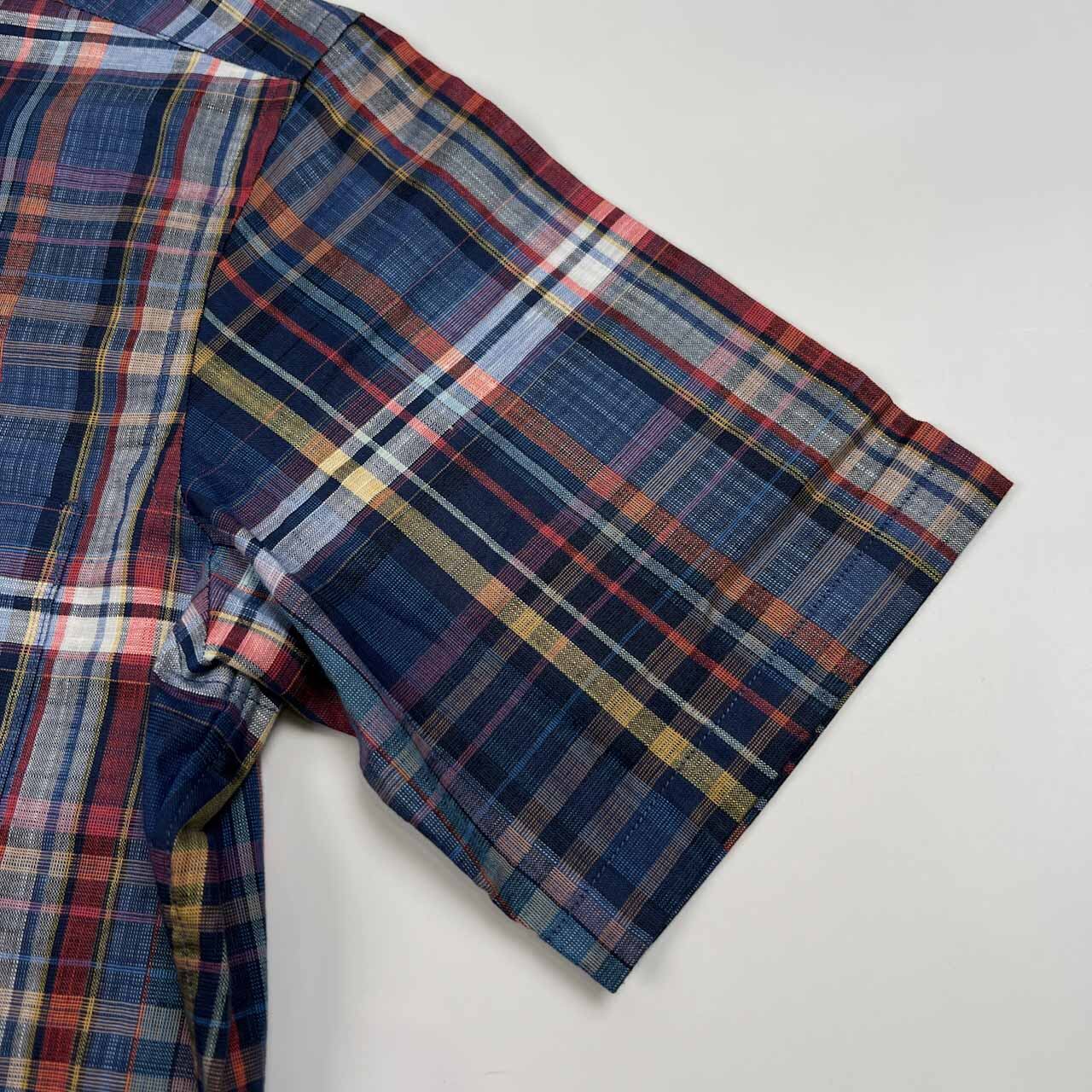 美品 THE SCOTCH HOUSE スコッチハウス オーストリア製生地 Getzner社 リネン混 マルチ チェック柄 半袖シャツ サイズ M /メンズ/三陽商会/麻混