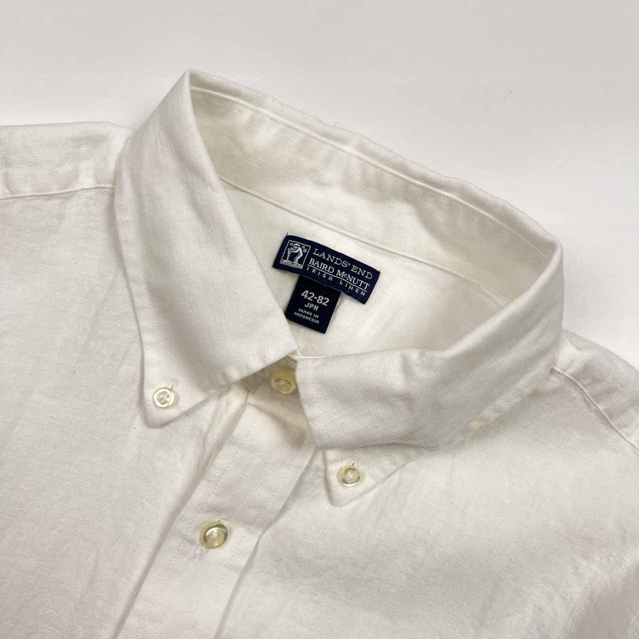 90s LANDS' END ランズエンド Baird McNutt Irish Linen BD ボタンダウン 長袖 ワイシャツ ドレスシャツ 42-82/ホワイト メンズ ビンテージ