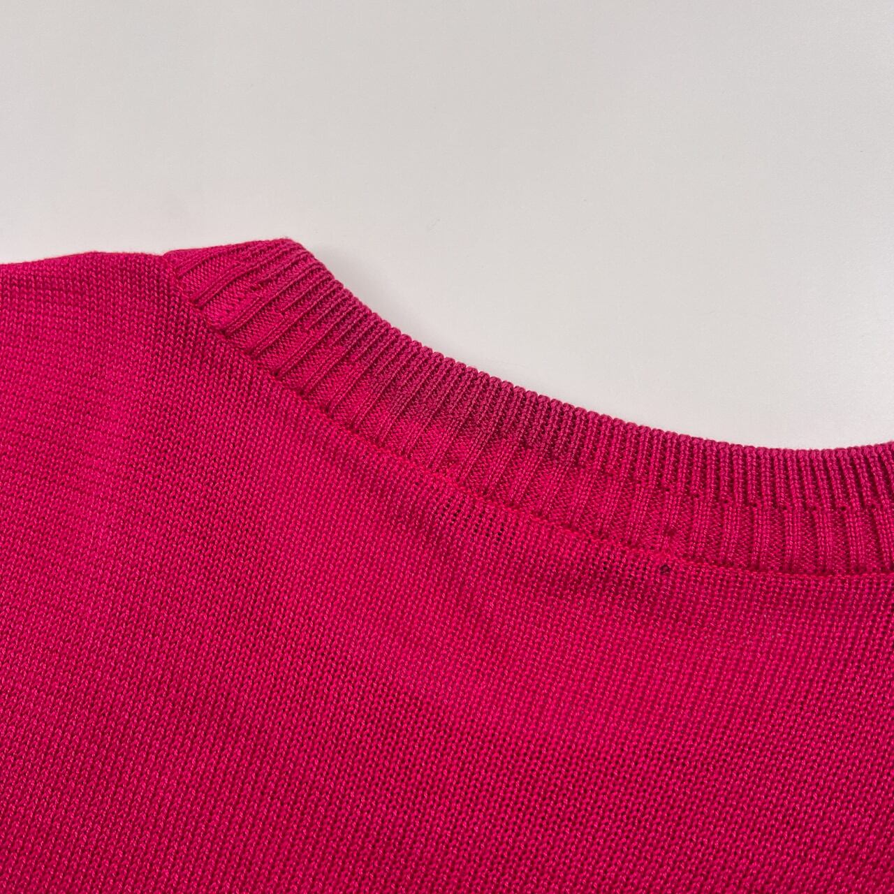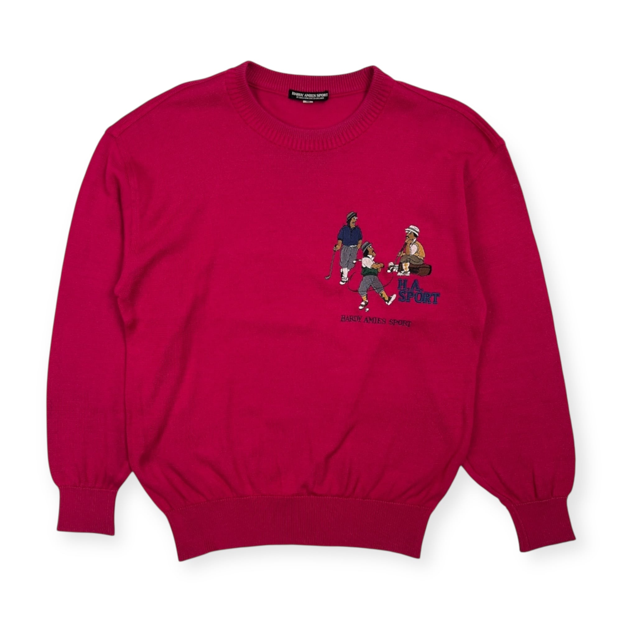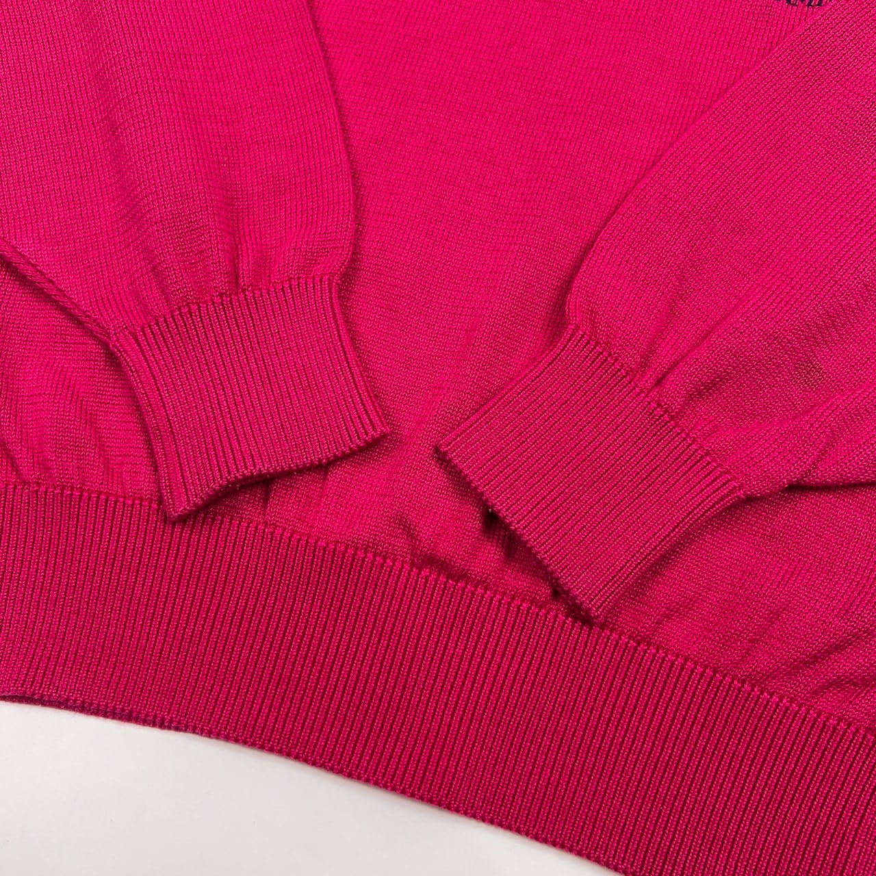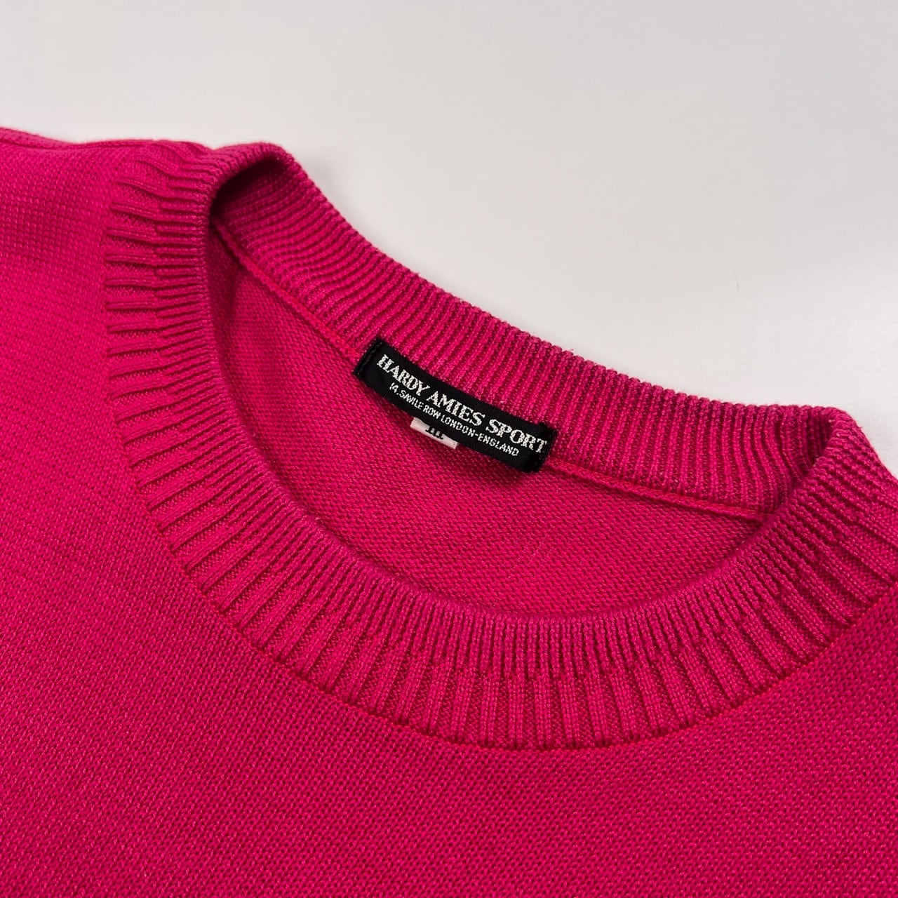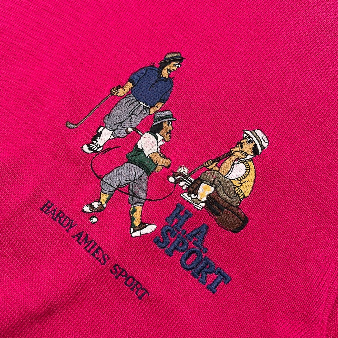 HARDY AMIES ハーディエイミス ゴルフ刺繍入り 長袖 コットンニット セーター /ショッキングピンク系/日本製/薄手