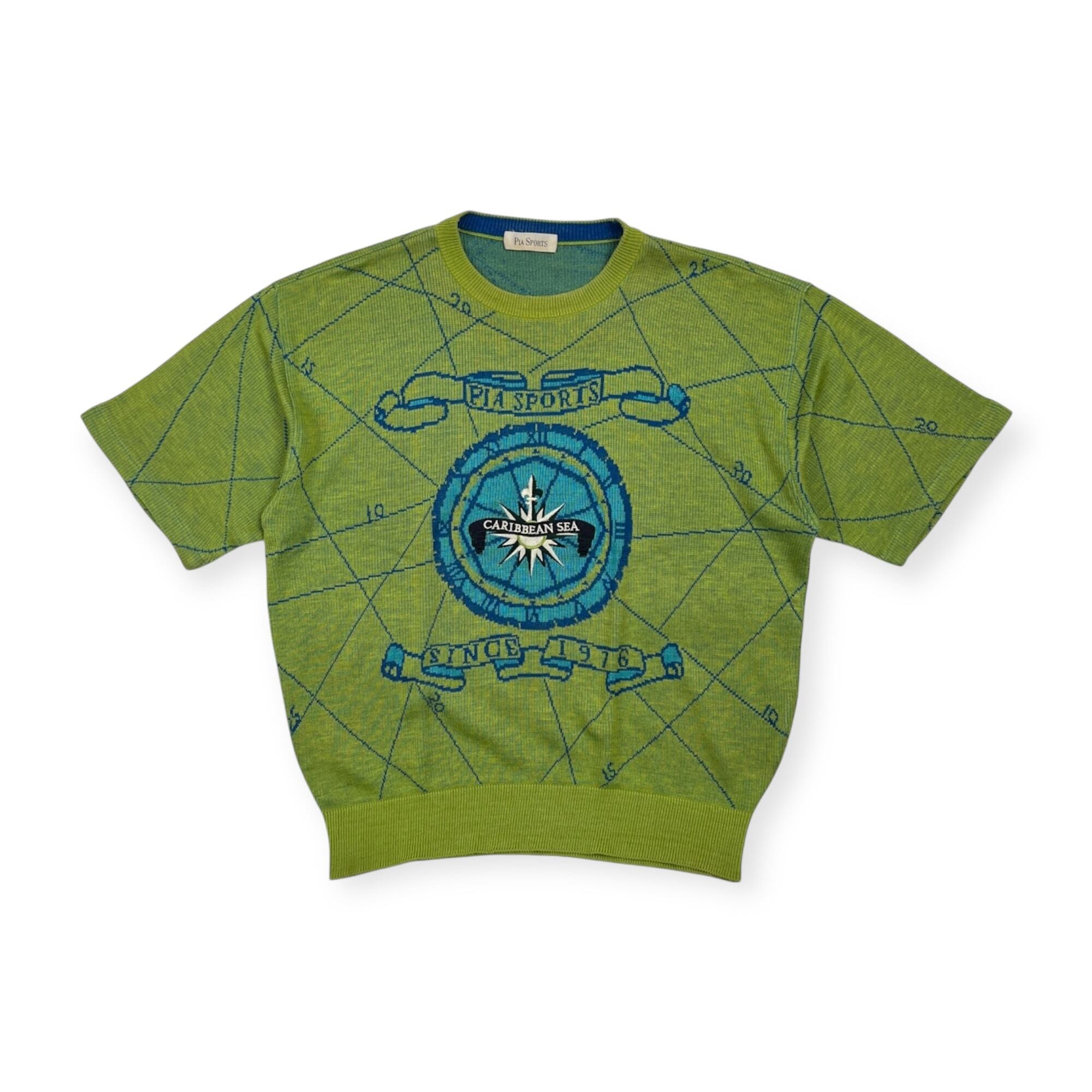 PIASPORTS ピアスポーツ BIG刺繍 半袖 リネン ニット セーター サイズ 3 /グリーン/ライカ/日本製