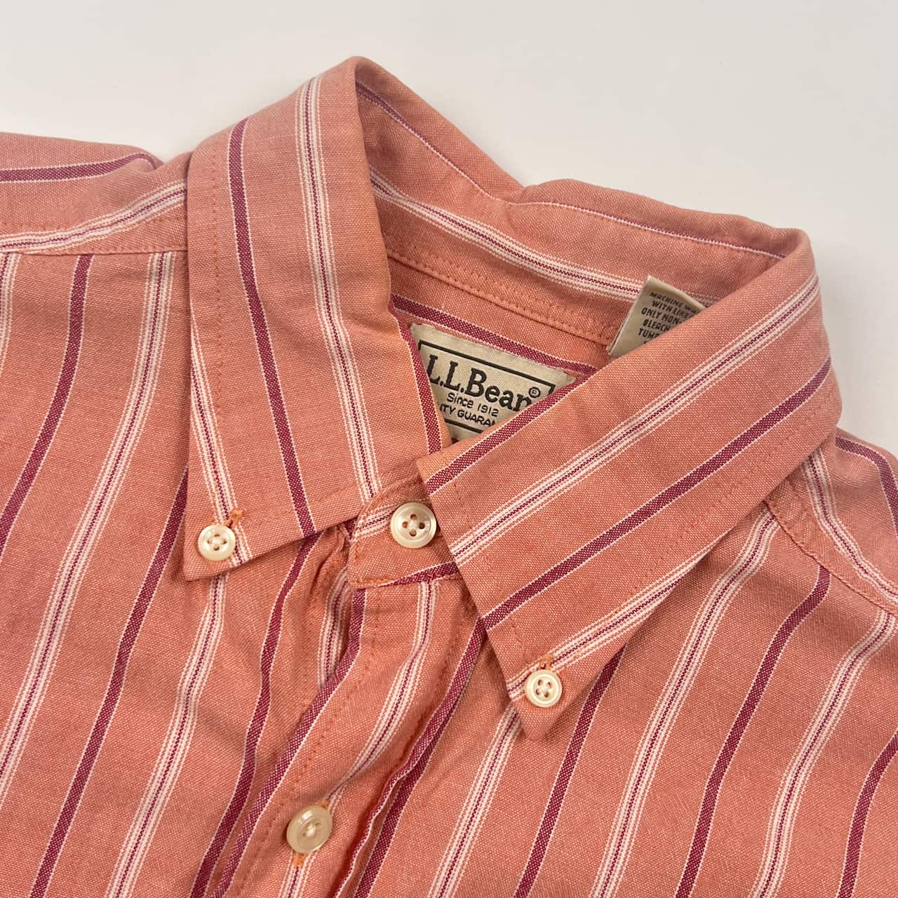 90s L.L.Bean エルエルビーン ストライプ BD ボタンダウン 長袖シャツ S-REG/サーモンピンク メンズ アウトドア ビンテージ