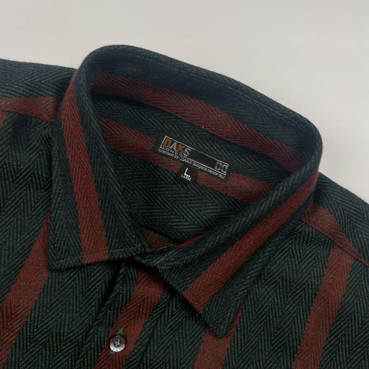DAKS ダックスストライプ ヘリンボーン ウール 長袖シャツ L/ダークグリーン×ボルドー系 メンズ