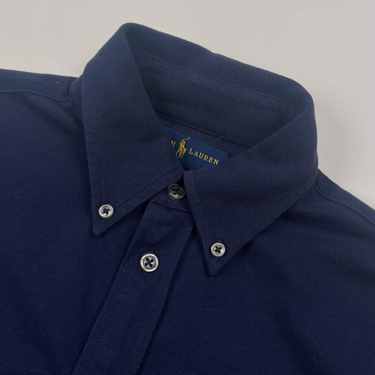RALPH LAUREN KNIT OXFORD BD ボタンダウン 鹿の子 長袖 ポロシャツ S/ネイビー メンズ
