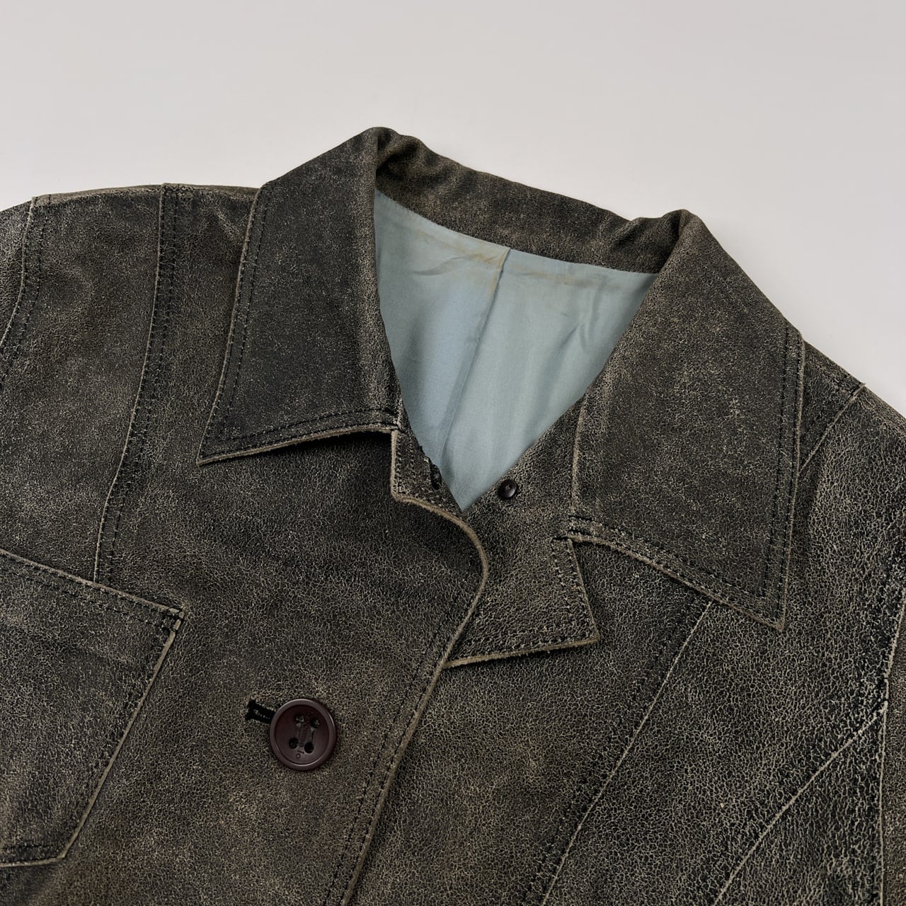 レザー特有の少し使用感、色落ち、小傷、襟、フロントにヨゴレはありますが、商品状態は良好です。まだまだご愛用していただけます。コンデションについての詳細は画像をご参照ください。