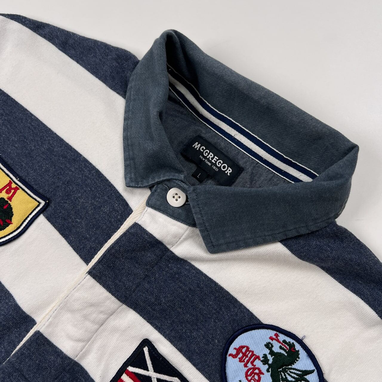 McGREGOR マクレガー ワッペン付き ボーダー柄 長袖 ラガーシャツ ポロシャツ サイズ L /メンズ