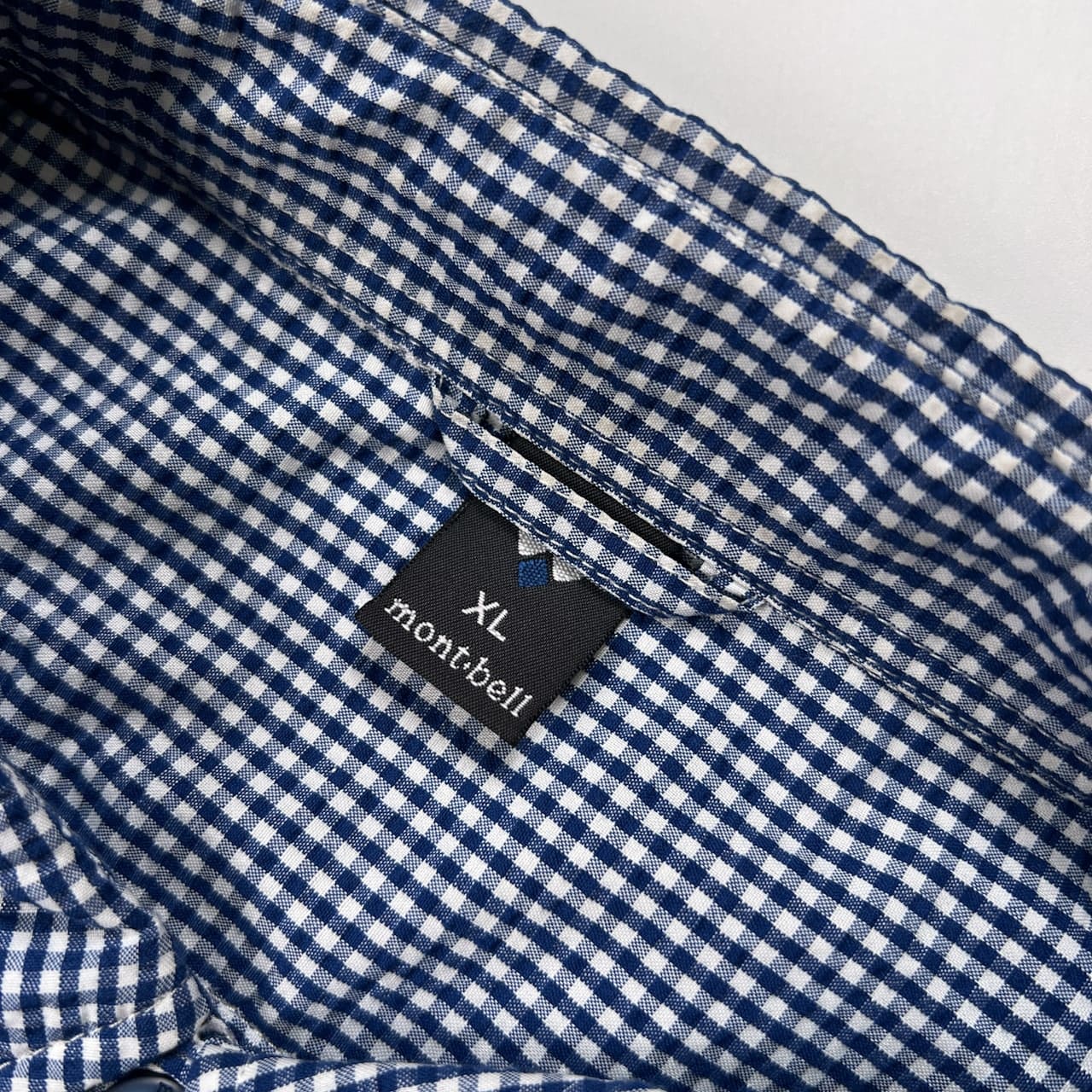 mont-bell モンベル ギンガムチェック シアサッカー BD 長袖シャツ サイズ XL /メンズ/ホワイト×ネイビーブルー/アウトドア