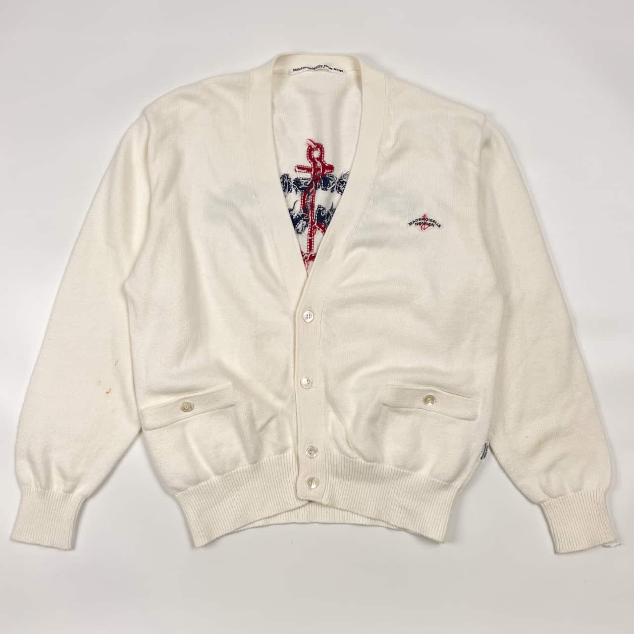 Mademoiselle NON NON SPORTS マドモアゼルノンノン Vネック 背面デザイン 長袖 コットン ニット カーディガン/ホワイト レディース