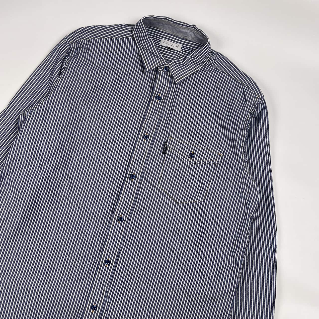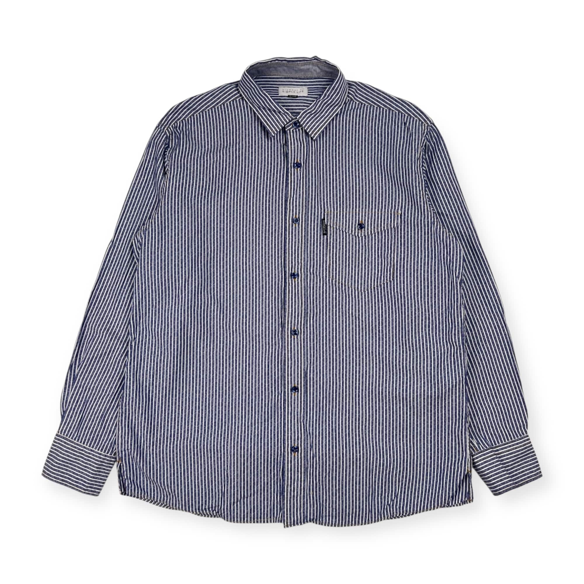 SIMPLE LIFE シンプルライフ ストライプ 長袖シャツ L/ブルー メンズ