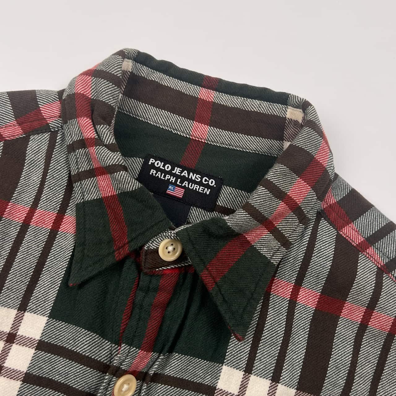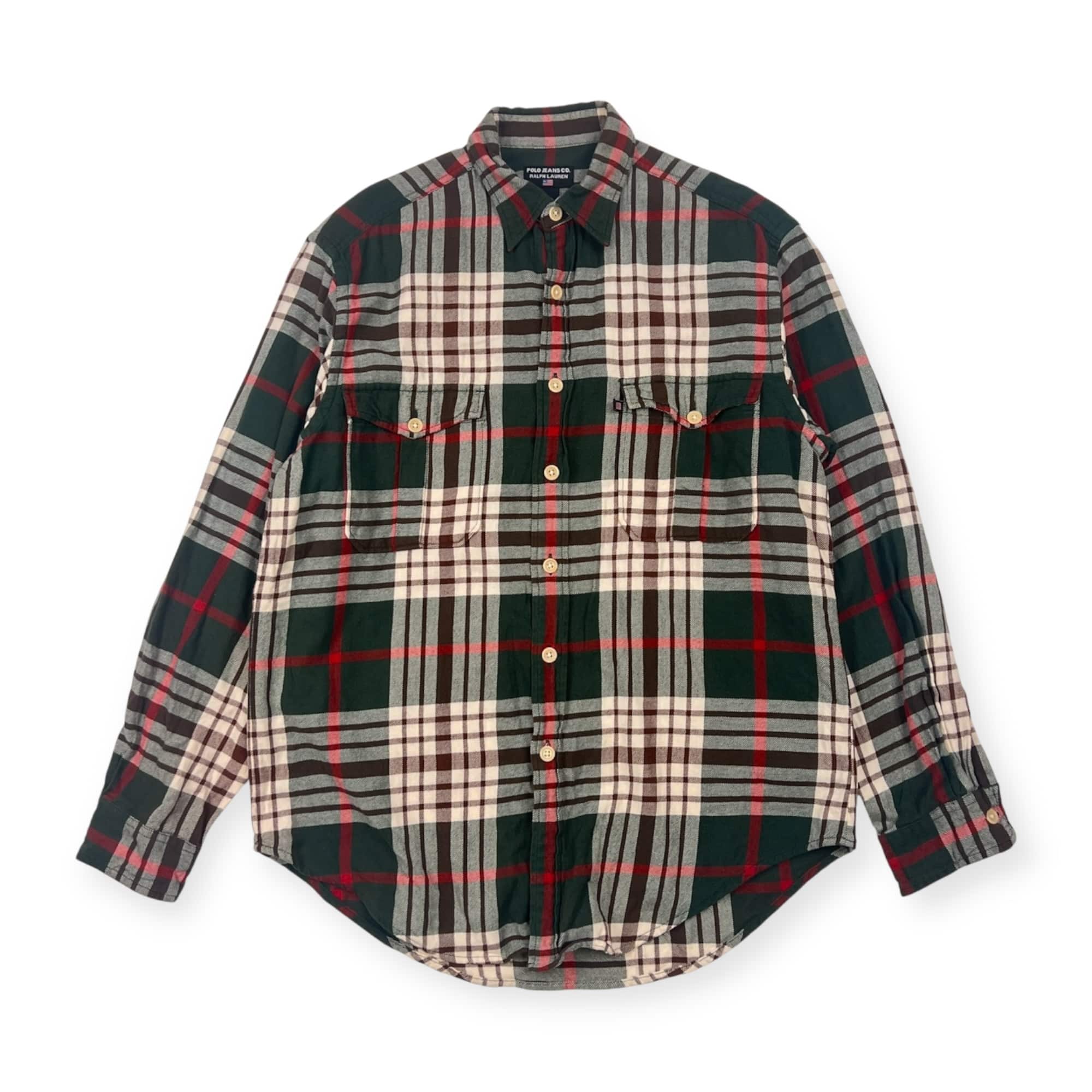 90s POLO JEANS CO. RALPH LAUREN ラルフローレン チェック ダブルポケット 長袖 ネルシャツ M/グリーン×レッド系 メンズ ビンテージ