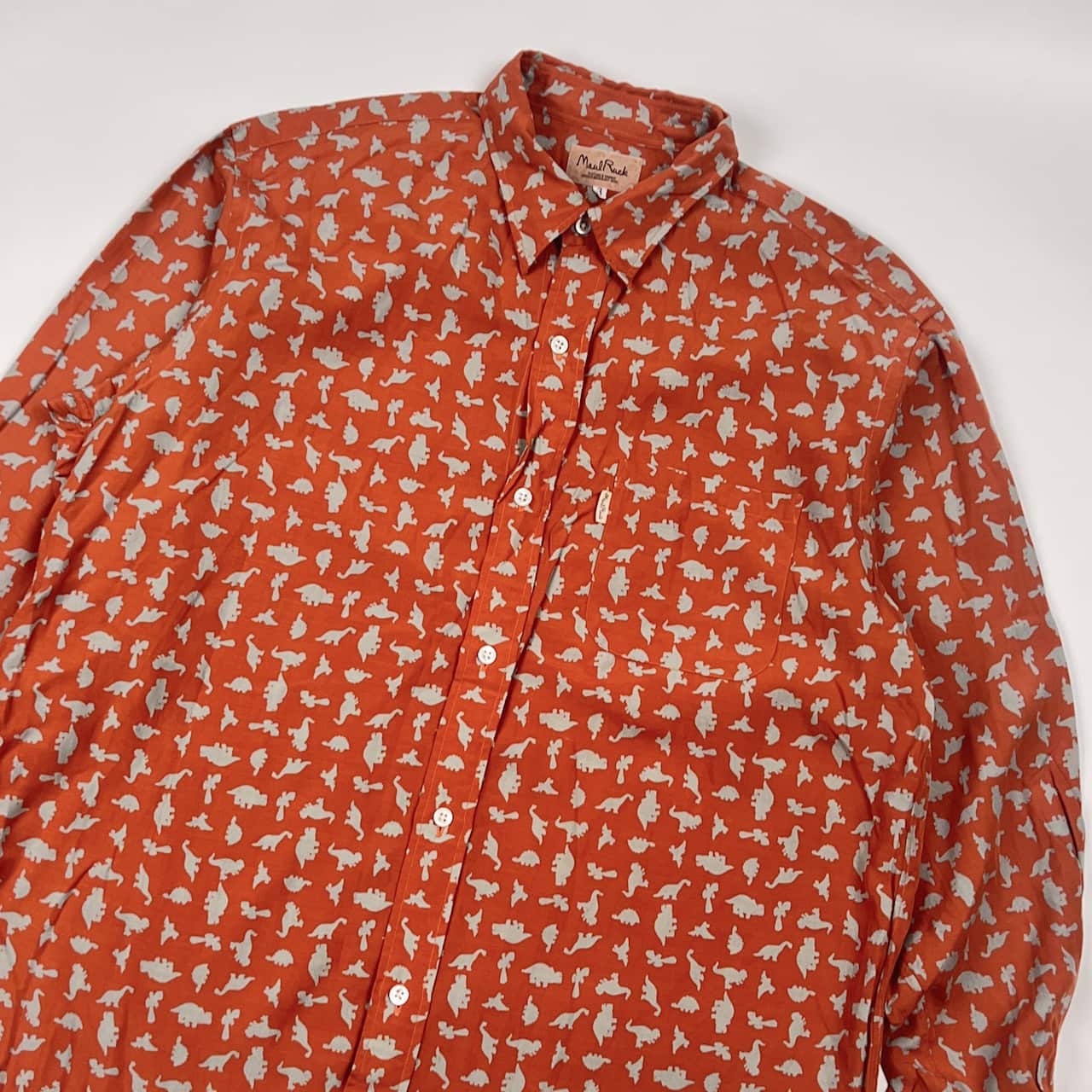 リネン混 Maul Ruck モールラック 恐竜柄 長袖シャツ 3/オレンジ系 メンズ ビンテージ タケオキクチ