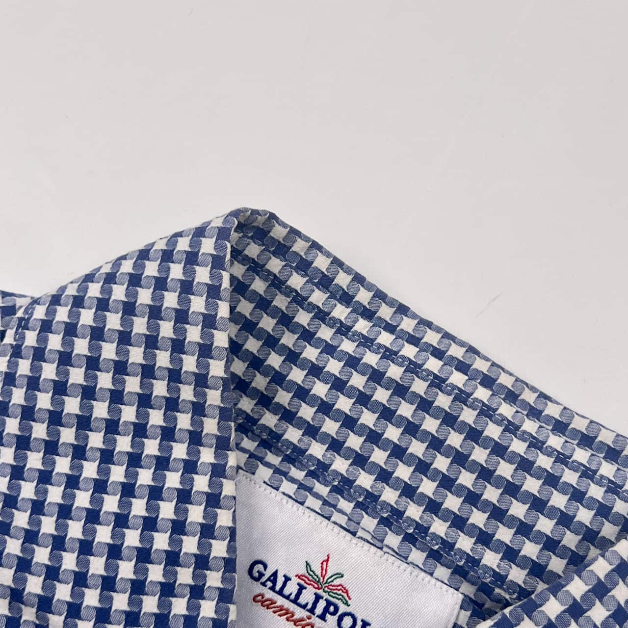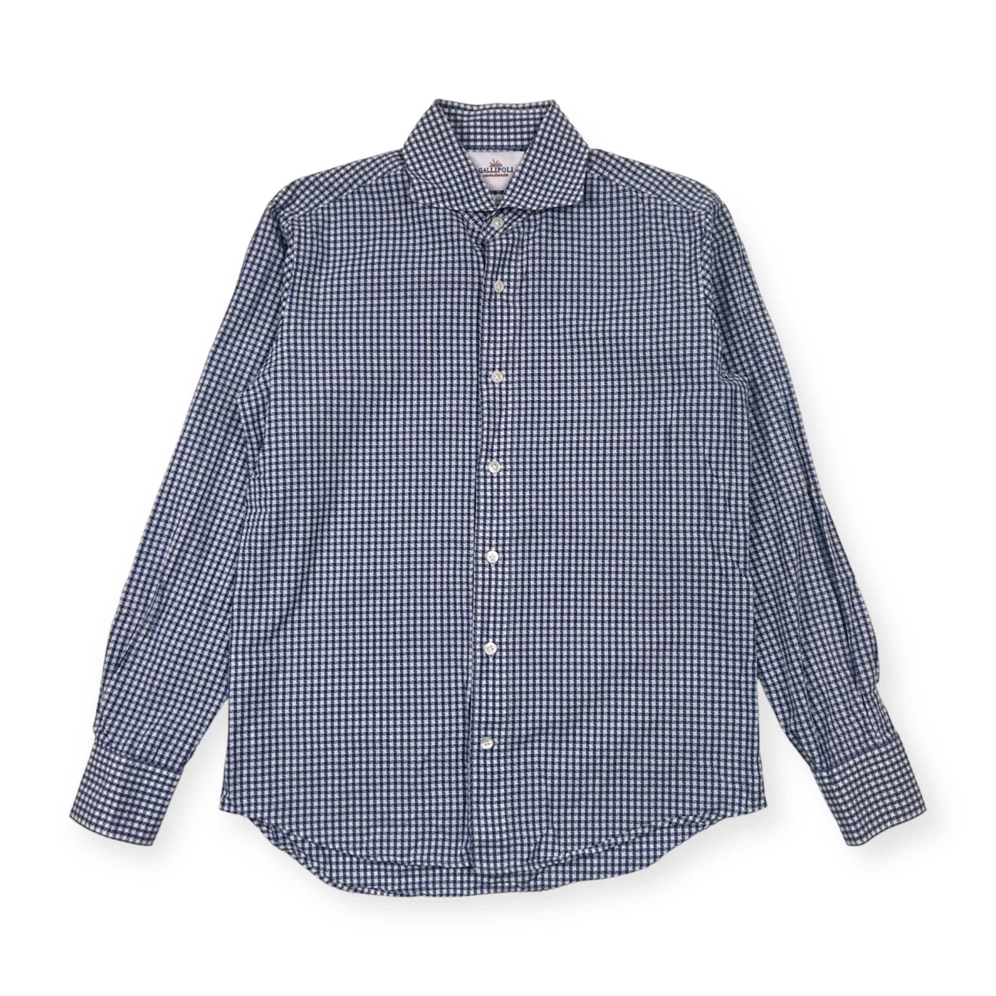 イタリア製 GALLIPOLI ガリポリ fuego グレンチェック風 長袖シャツ 48/ブルー メンズ