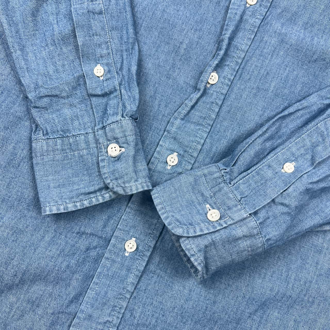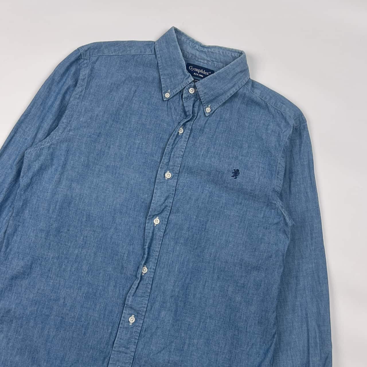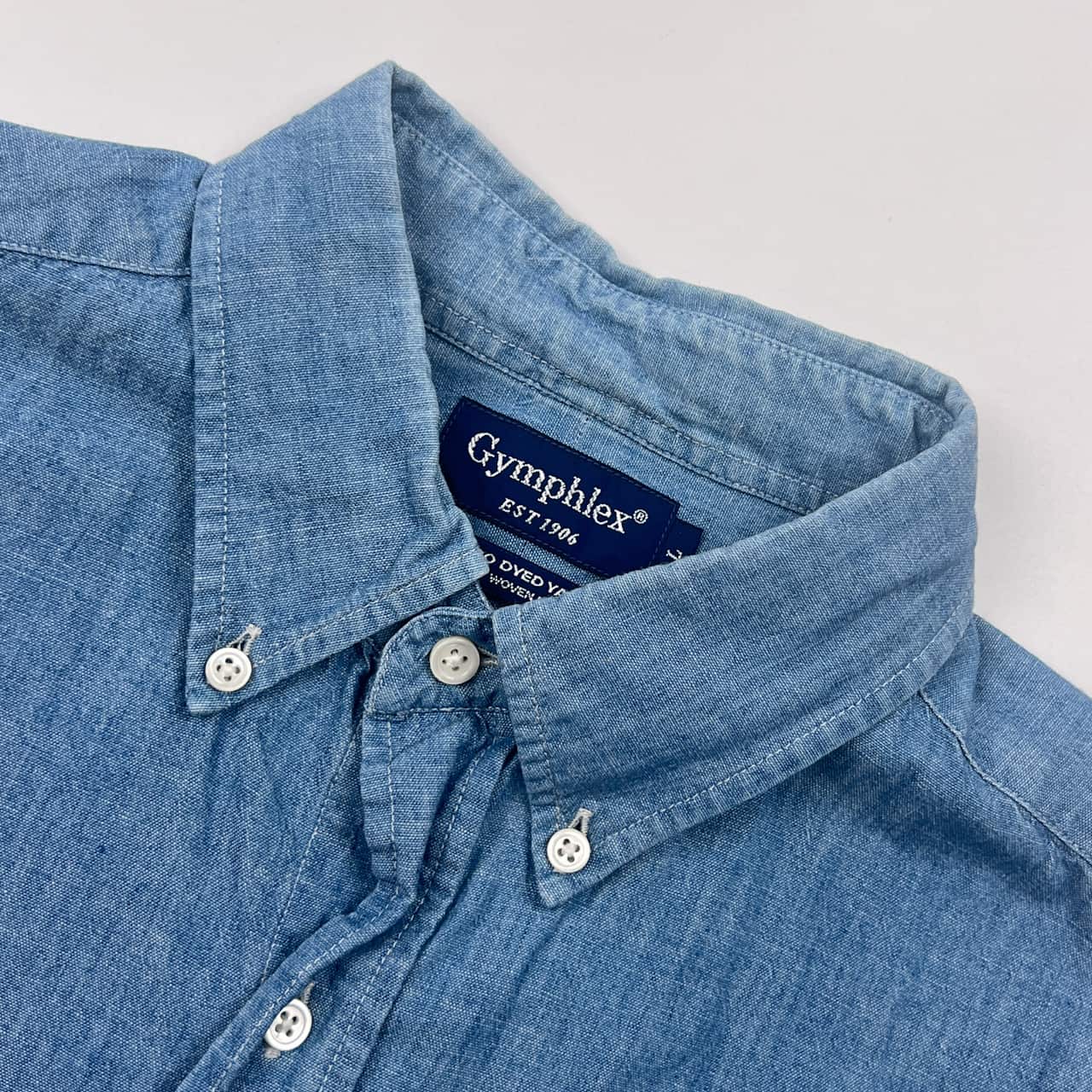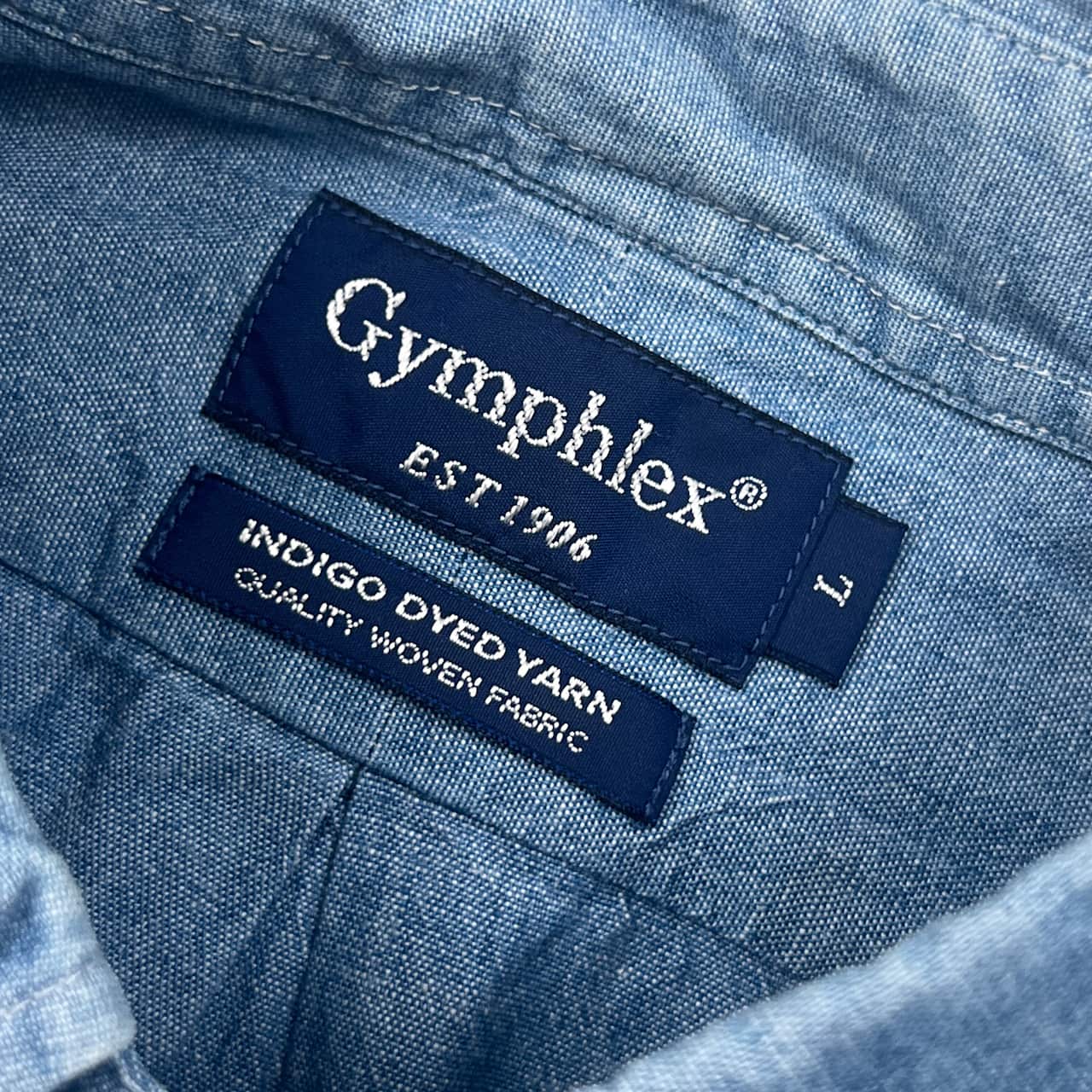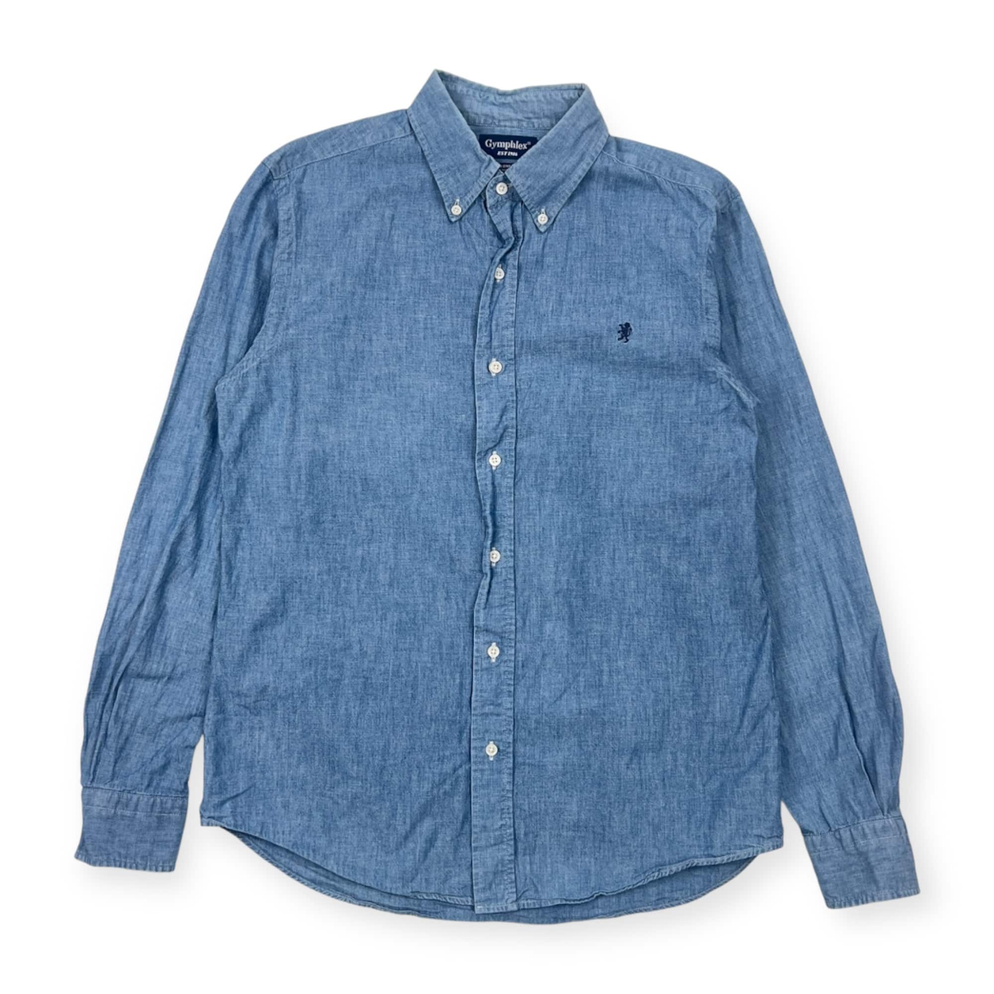 Gymphlex ジムフレックス INDIGO DYED YARN BD ボタンダウン 長袖シャツ L/ブルー メンズ