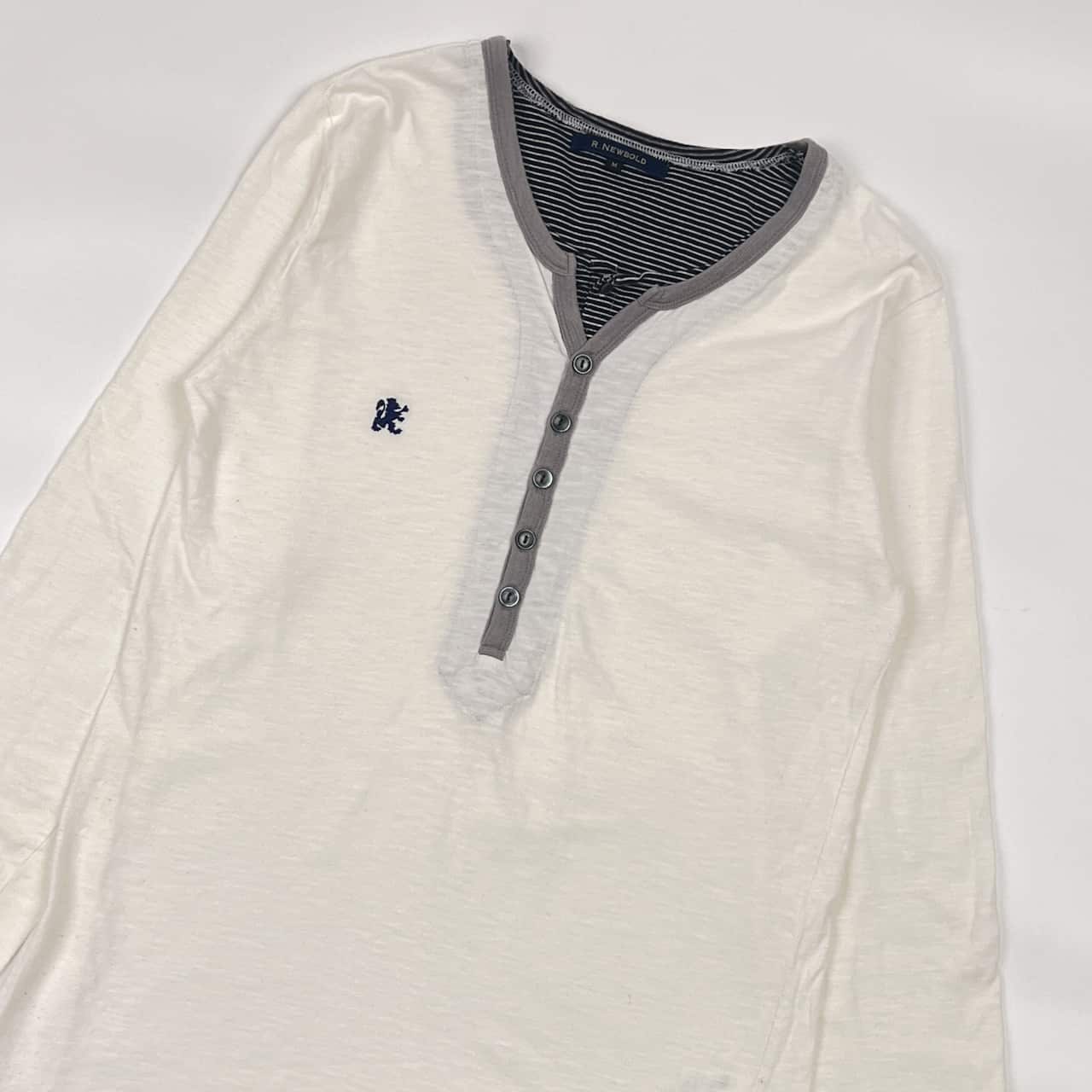 R.NEW BOLD アールニューボールド 重ね着風 デザイン 長袖 ヘンリーネックシャツ M/ホワイト系 メンズ