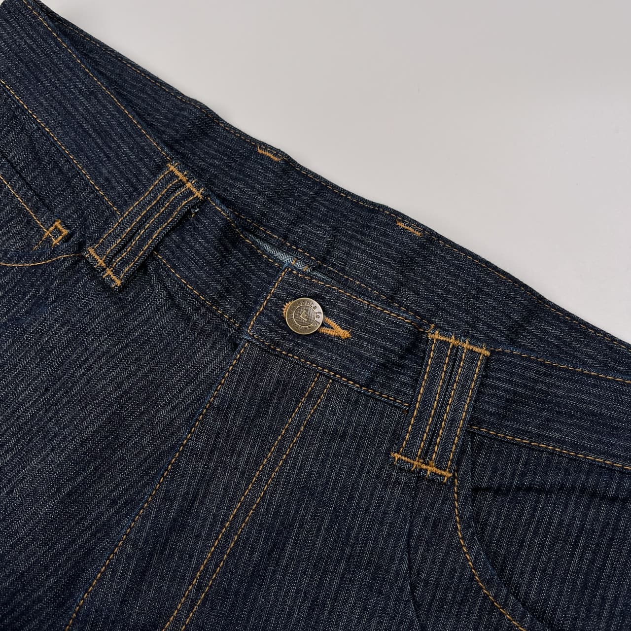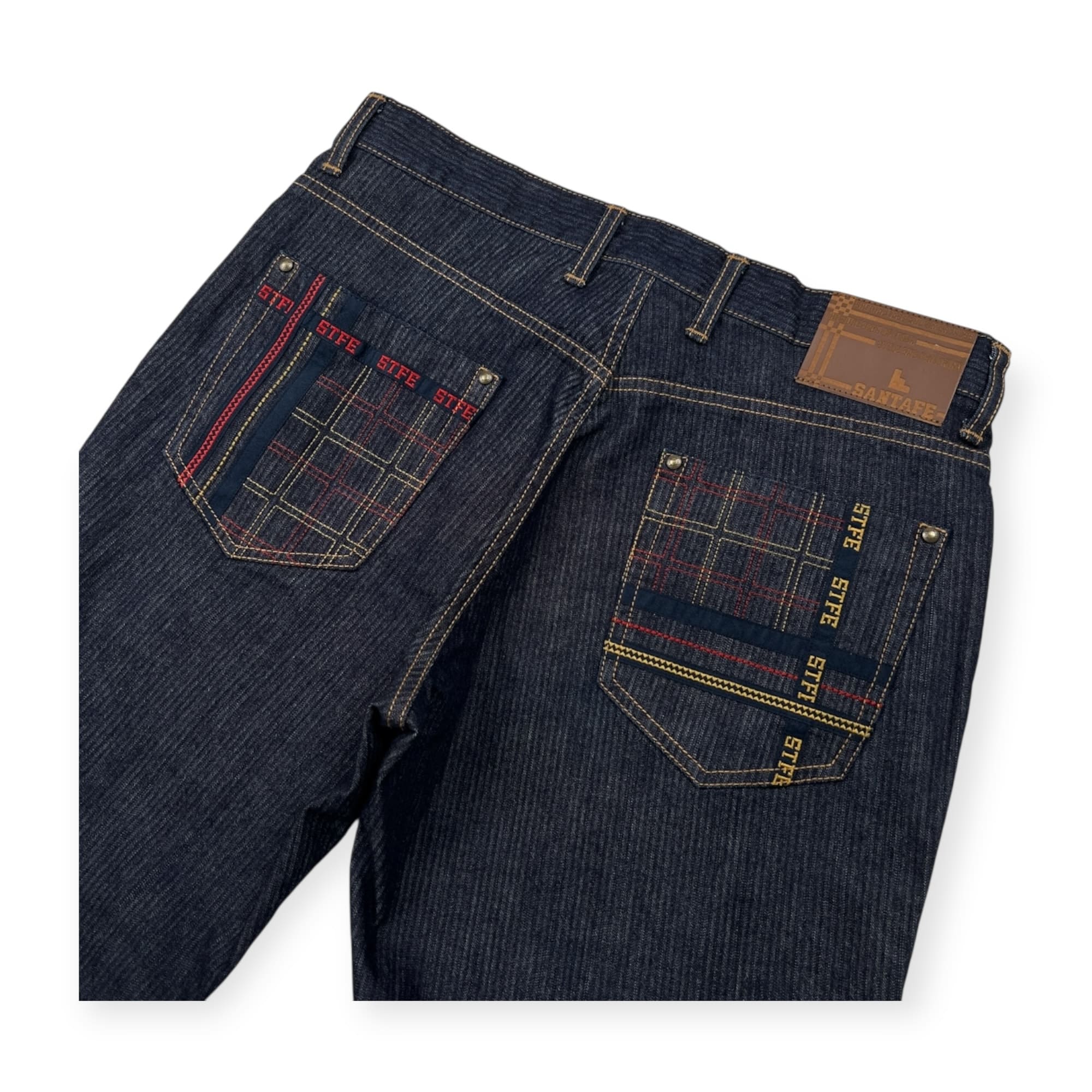 Santa Fe サンタフェ ヒッコリー風 デニム パンツ ジーンズ サイズ 33 /メンズ/濃紺/バック刺繍入り/ 日本製