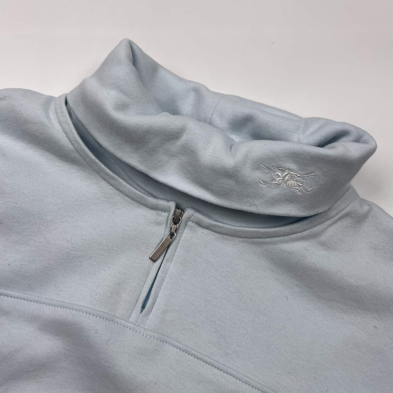 BURBERRY GOLF バーバリー ゴルフ タートルネック 重ね着風 デザイン ハーフジップ 長袖シャツ L/水色 レディース