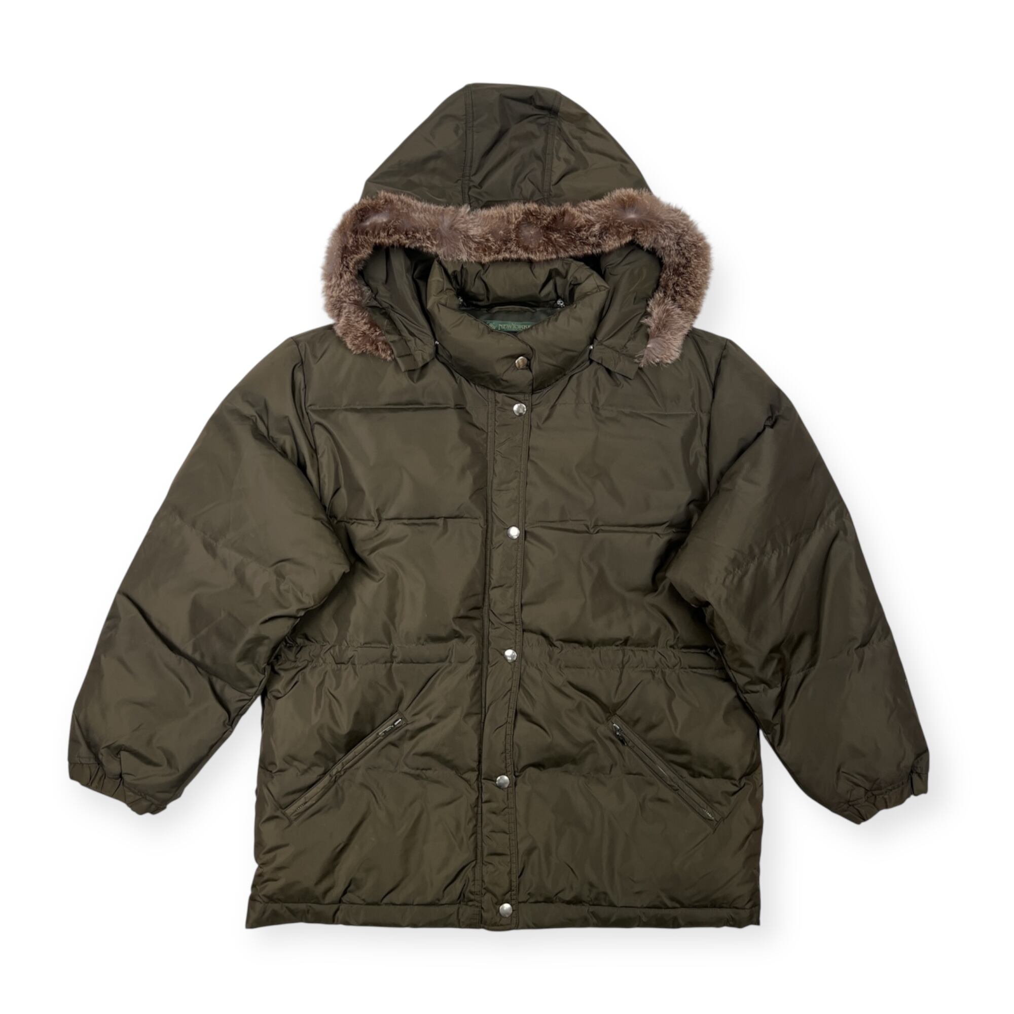 NEWYORKER ニューヨーカー 毛皮ファー フード付き ダウンジャケット サイズ 9AR /オリーブ カーキ系/レディース