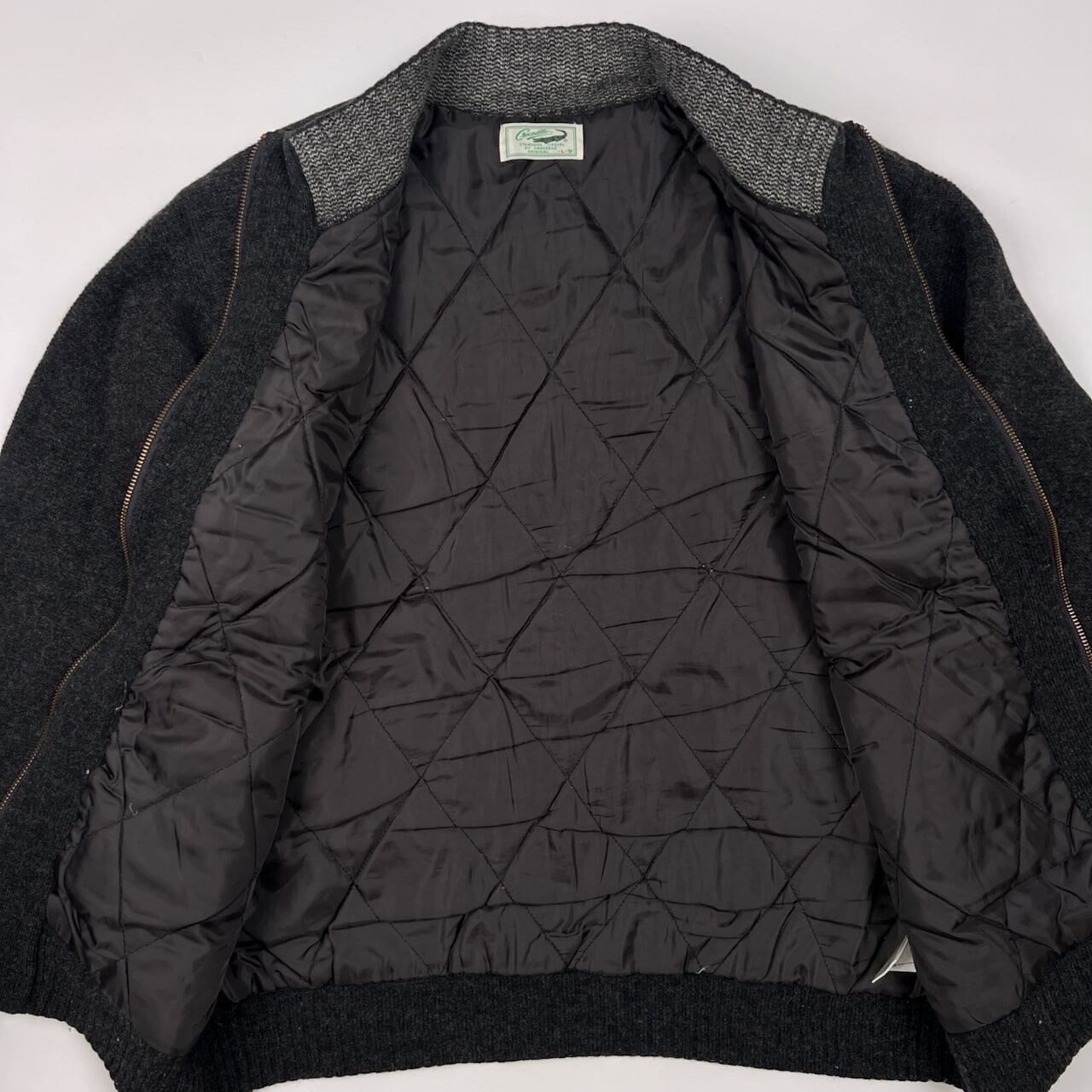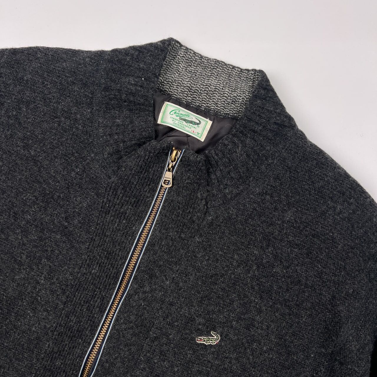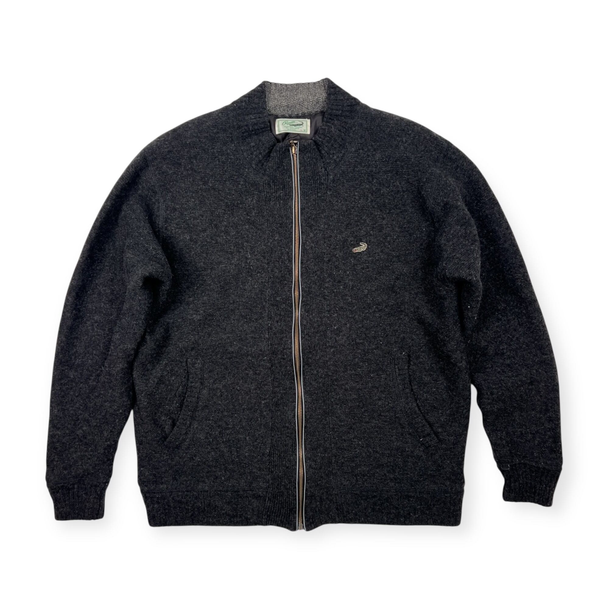 Crocodile クロコダイル 裏地付き ジップアップ ウールニット ジャケット サイズ L /メンズ/チャコール