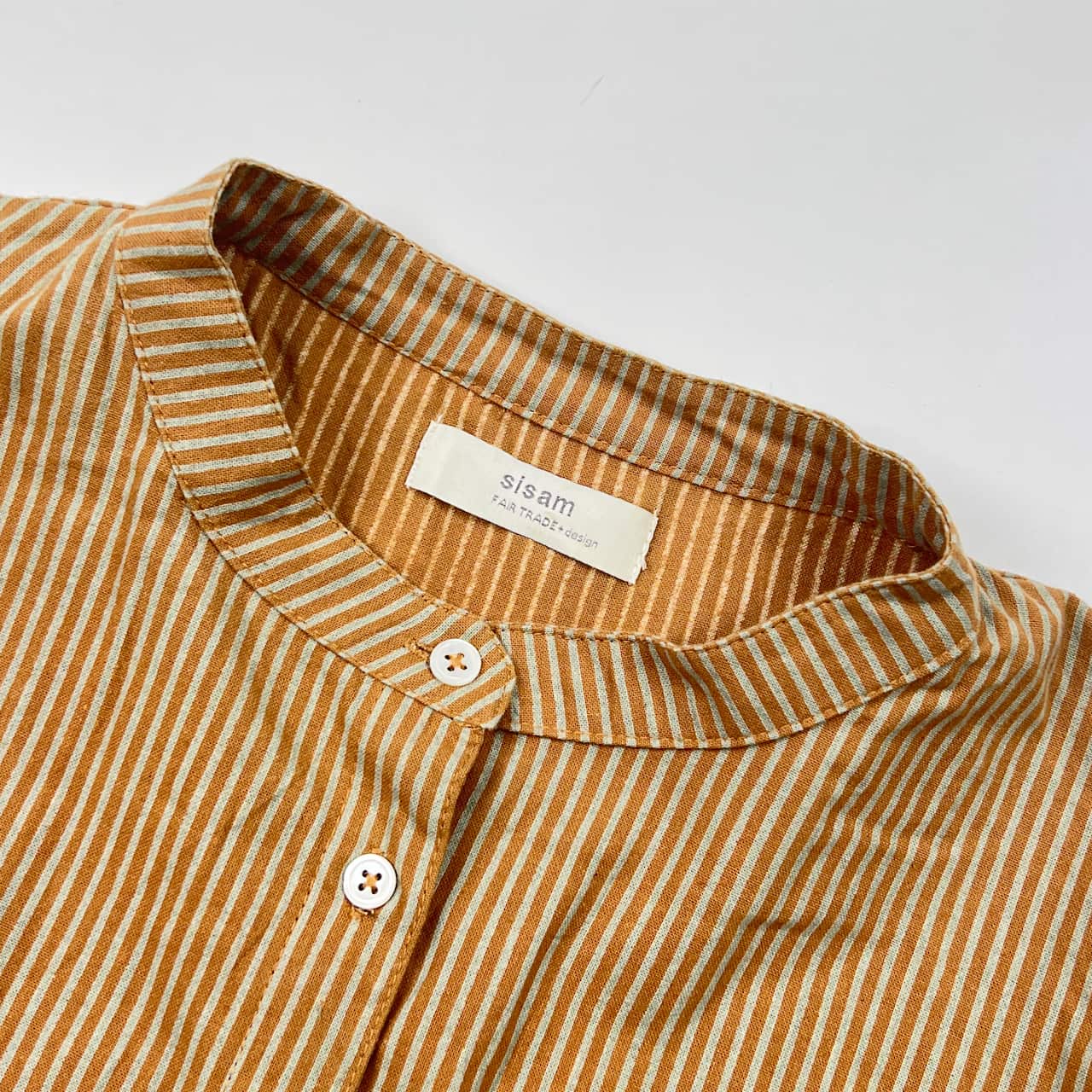 Sisam シサム ストライプ バンドカラー オーガニック コットン 長袖シャツ/レディース