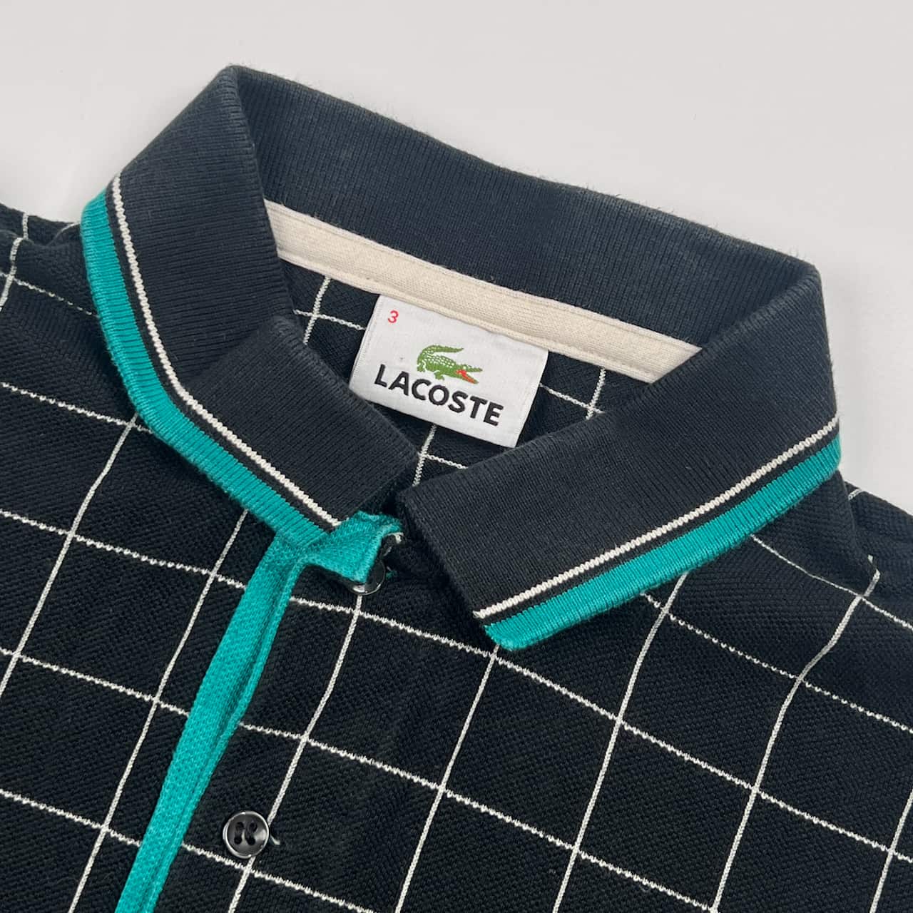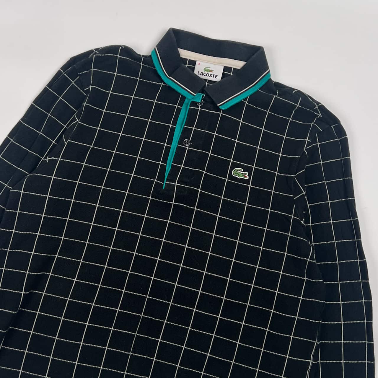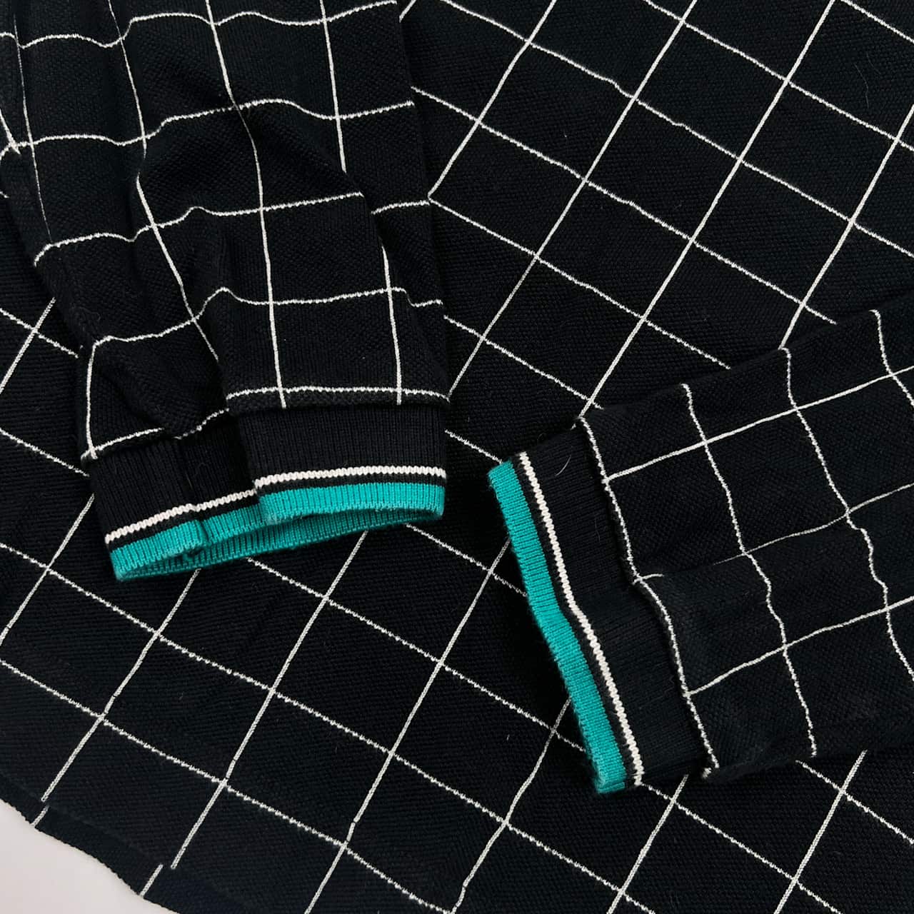 LACOSTE ラコステ チェック 鹿の子 長袖 ポロシャツ 3/ブラック系 メンズ ファブリカ