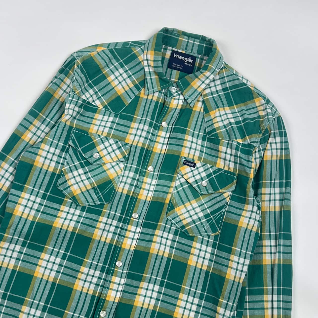 90s Wrangler ラングラー REGULAR FIT PRESHRUNK チェック 長袖 ウエスタンシャツ M/グリーン系 メンズ ビンテージ