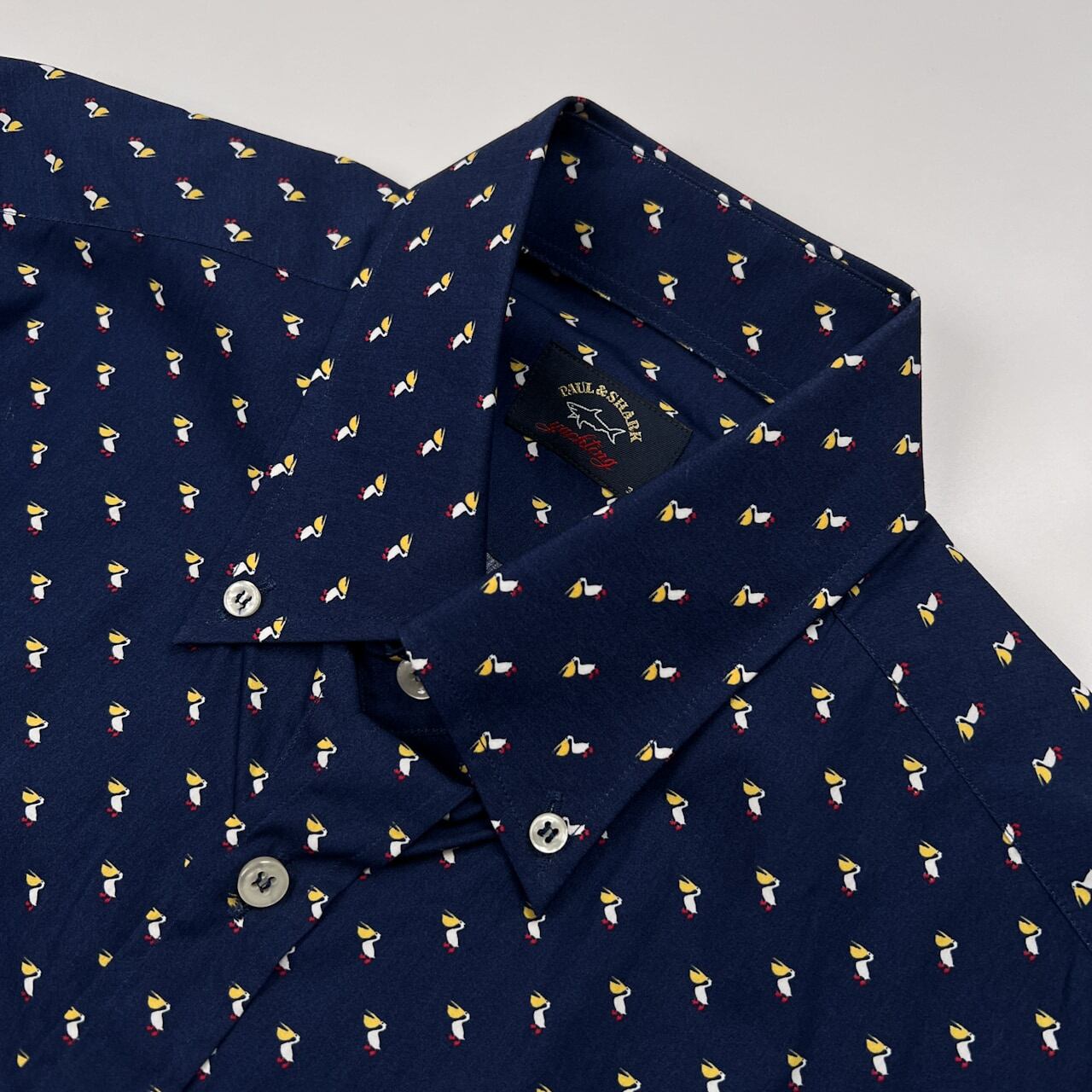 美品 PAUL&SHARK ポール&シャーク ペリカン総柄 BD 長袖シャツ サイズ 39 /ネイビー