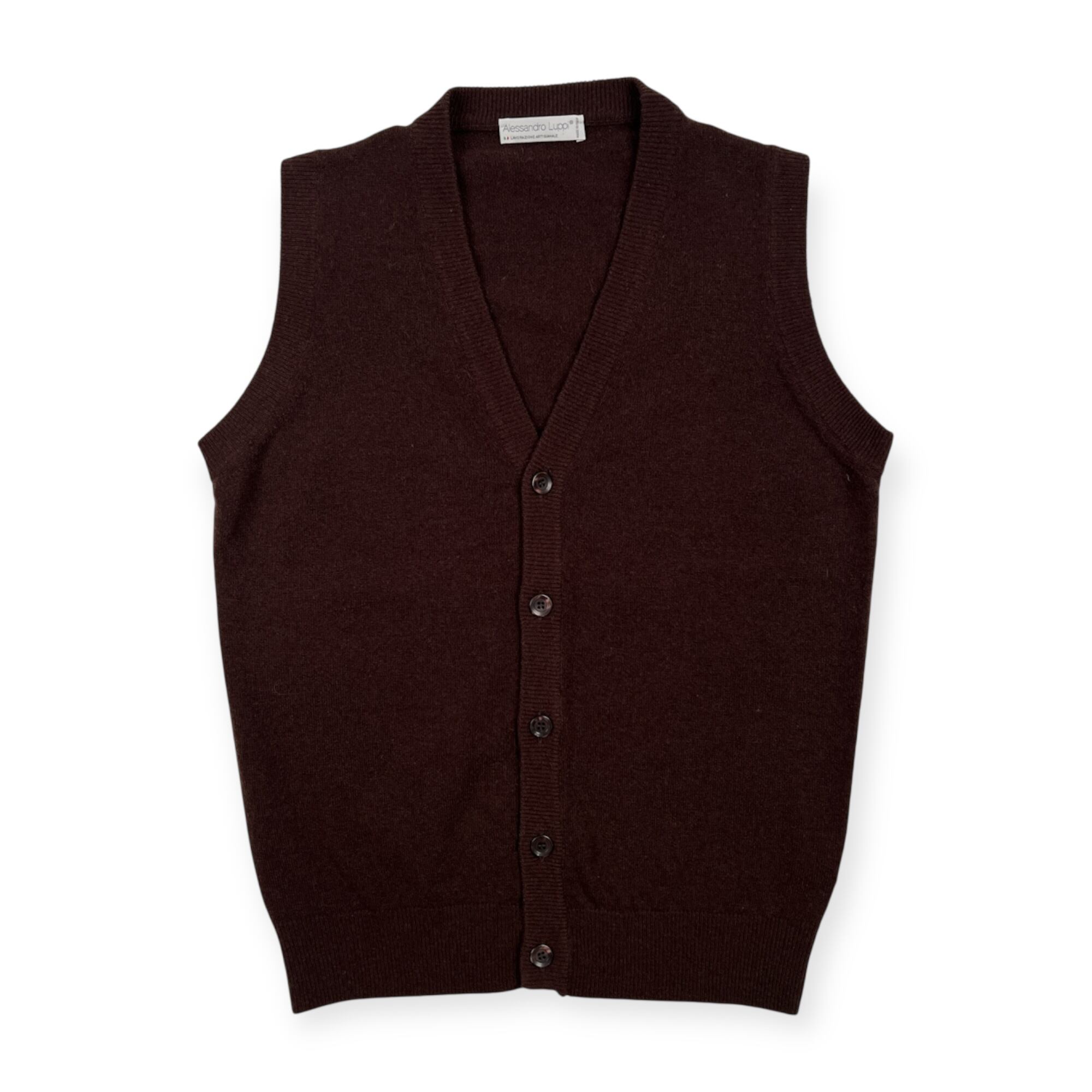 Alessandro Luppi アレッサンドロルッピ 前ボタン ウールニット ベスト カーディガン サイズ 44 /ダークブラウン/イタリア製