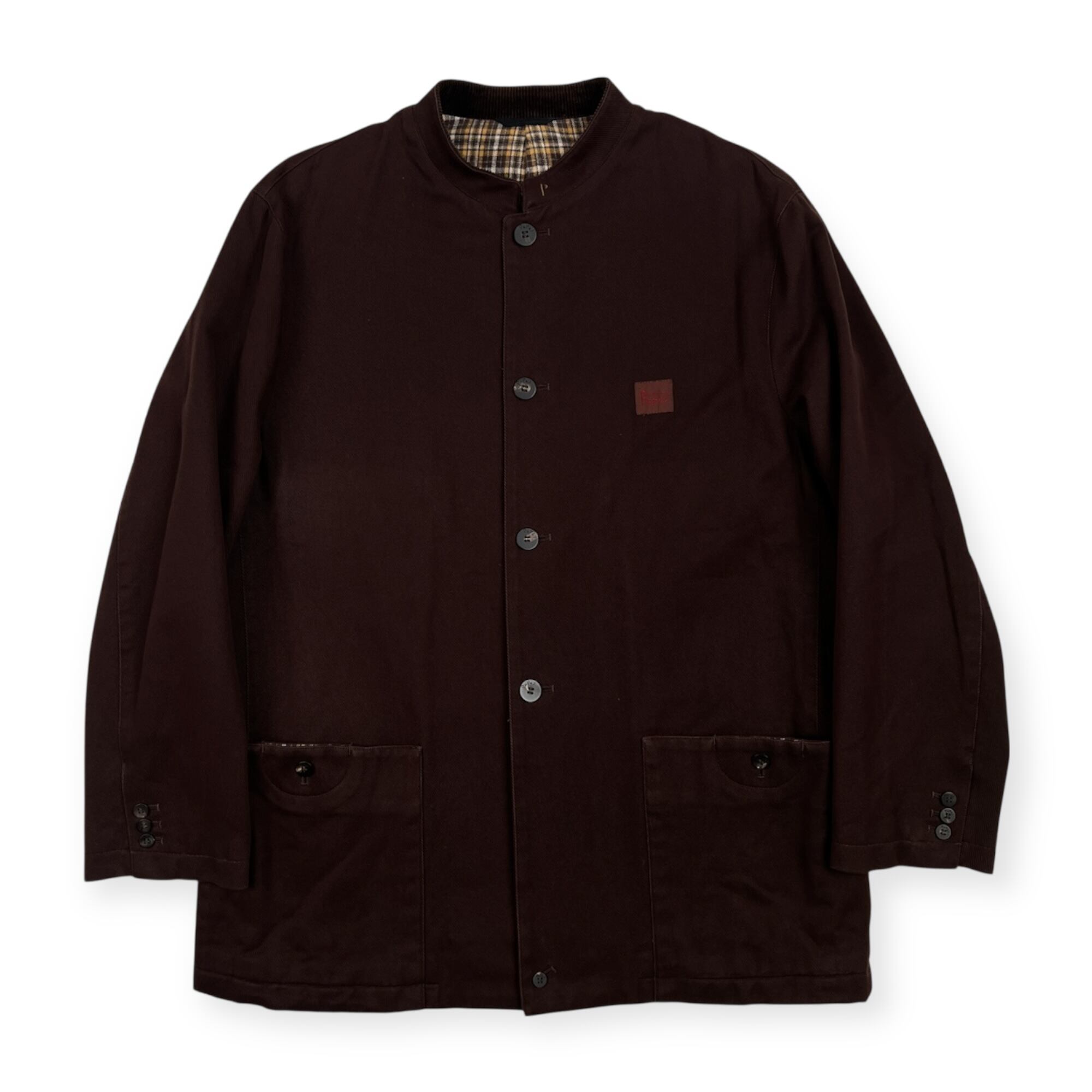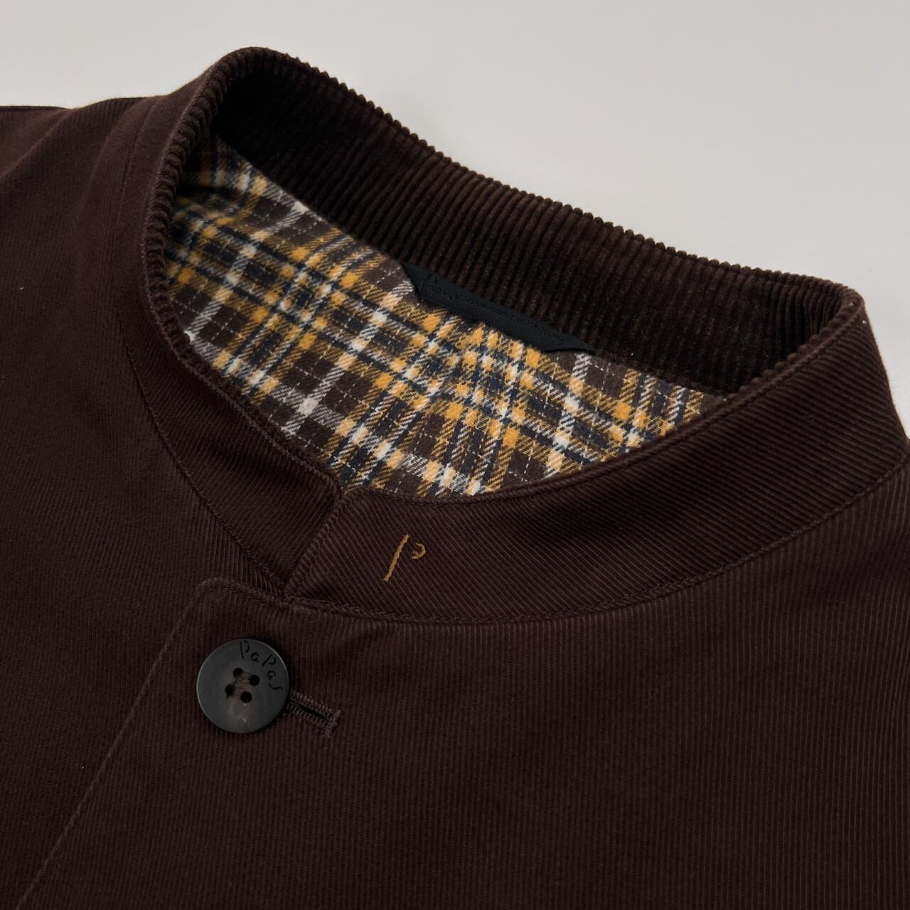 Papas パパス スタンドカラー ツイル ジャケット コート サイズ 48/M /ダークブラウン/裏チェック/裏地フランネル