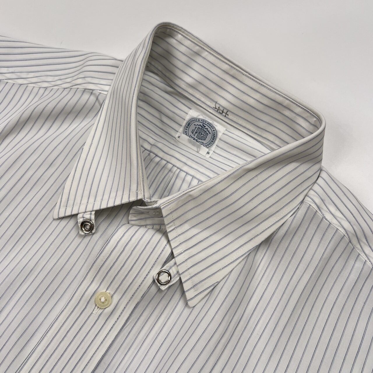 J.PRESS ジェイプレス ストライプ 長袖 ドレスシャツ 42-84 /ポケット付き/ホワイト×ブルー/メンズ