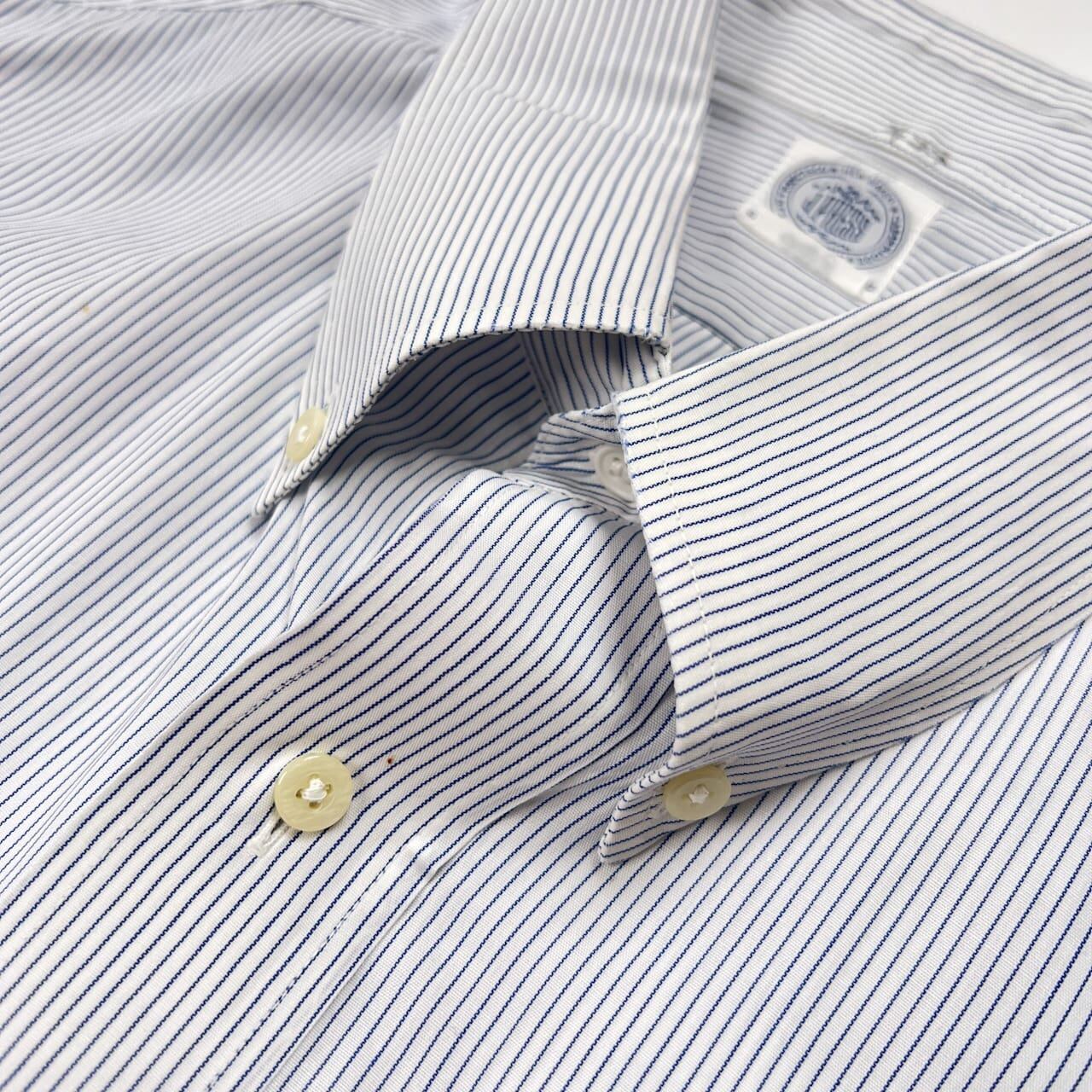 J.PRESS ジェイプレス ストライプ 長袖 ドレスシャツ 42-83 /ポケット付き/ホワイト×ネイビーブルー/メンズ