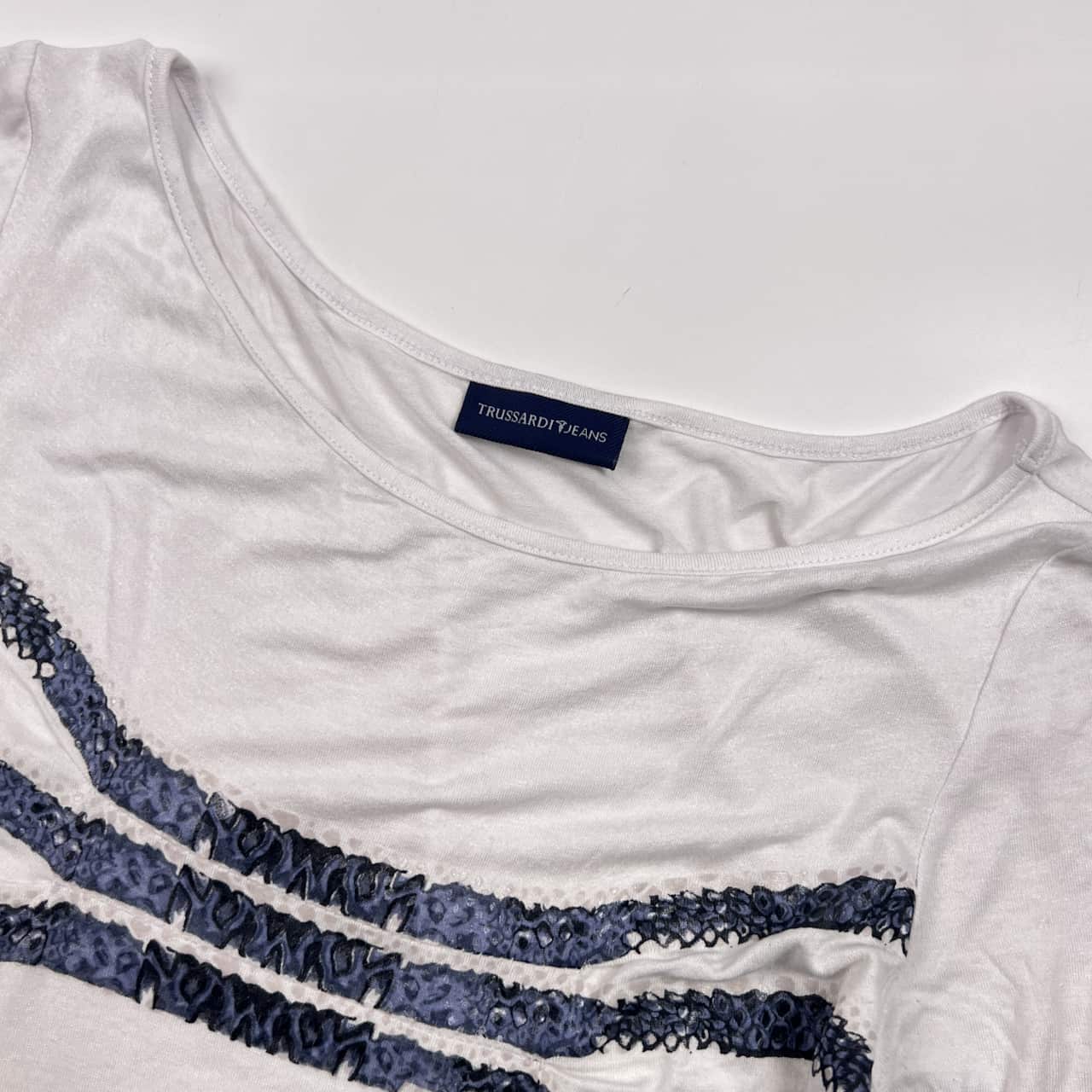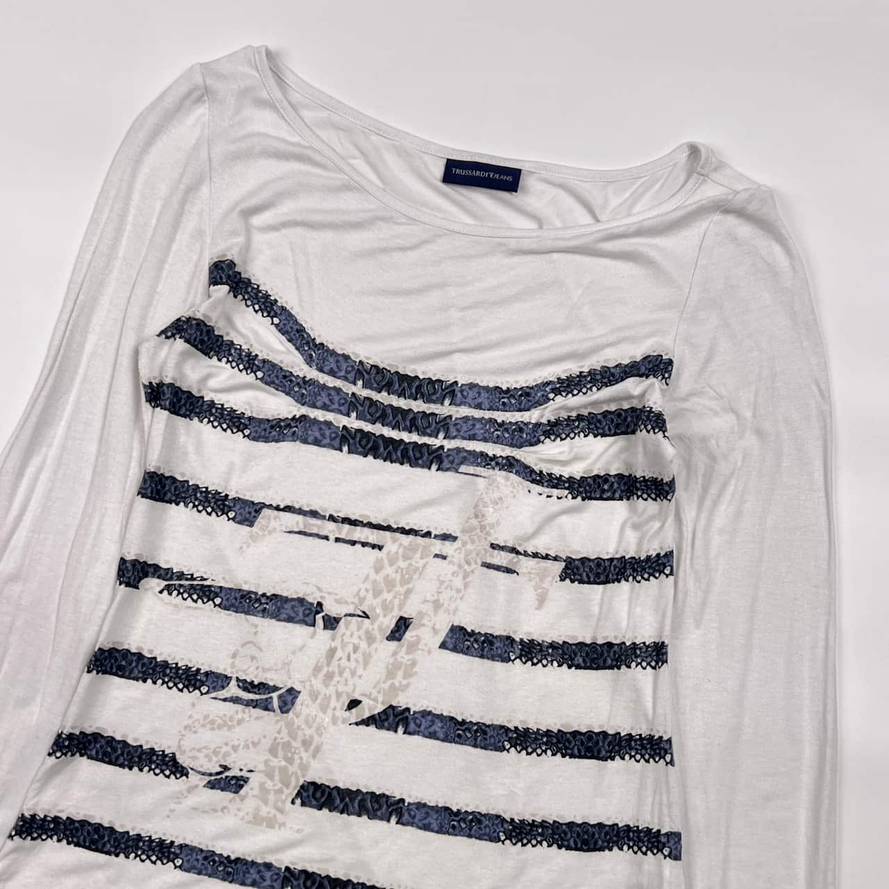 イタリア製 TRUSSARDI JEANS トラサルディ ボートネック デザイン 長袖 Tシャツ カットソー M/ホワイト レディース