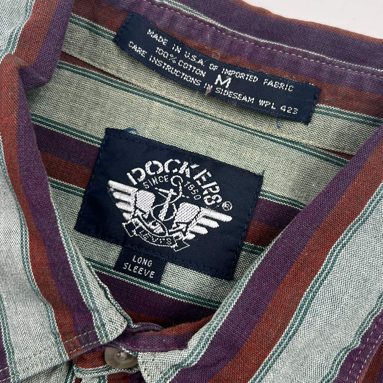 USA製 90s DOCKERS ドッカーズ LONG SLEEVE ストライプ 長袖シャツ M/マルチ メンズ ビンテージ リーバイス