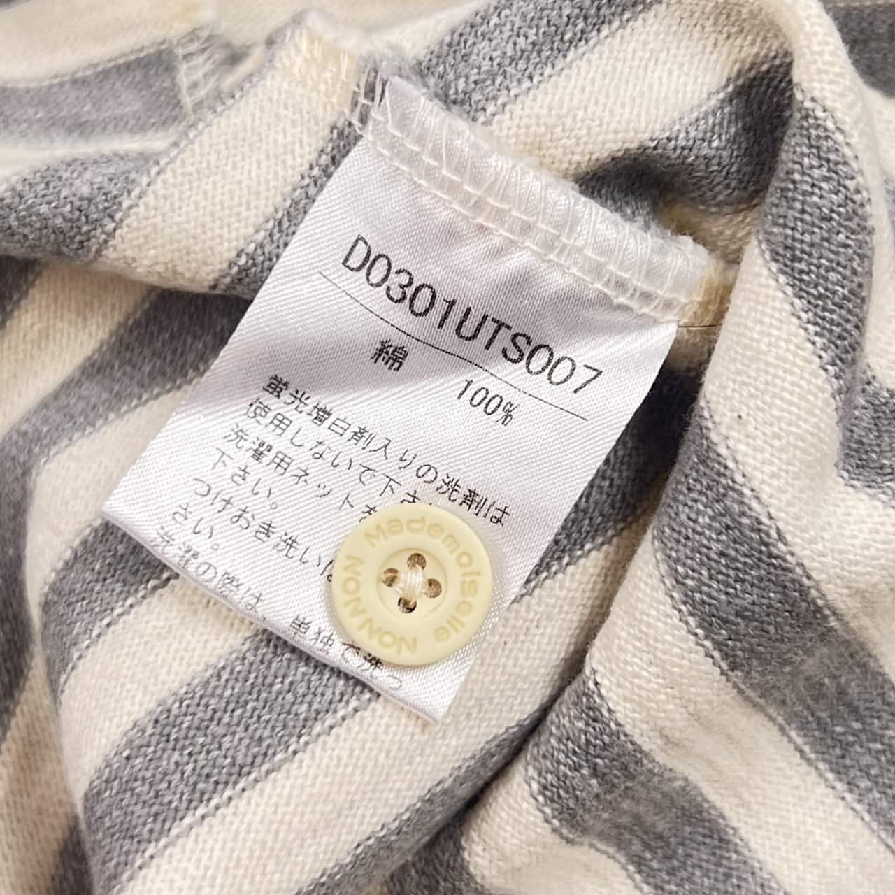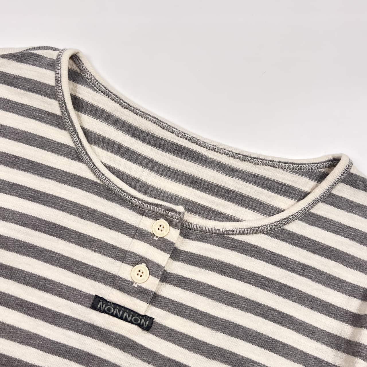 Mademoiselle NON NON マドモアゼルノンノン ボーダー ヘンリーネック 七分袖 Tシャツ カットソー M/グレー×ホワイト レディース
