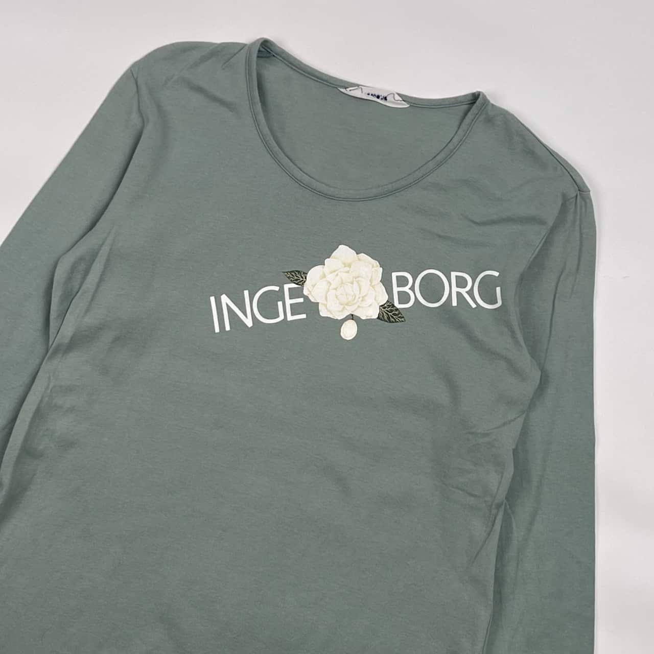 INGEBORG インゲボルグ バラ デザイン 長袖 Tシャツ カットソー /くすみブルー レディース