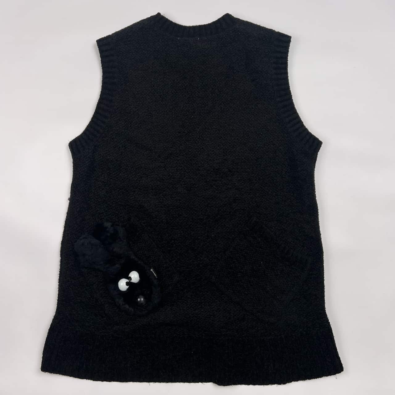 M.U SPORTS ミエコウエサコ キャラデザイン ニット ベスト F/ブラック レディース ゴルフ
