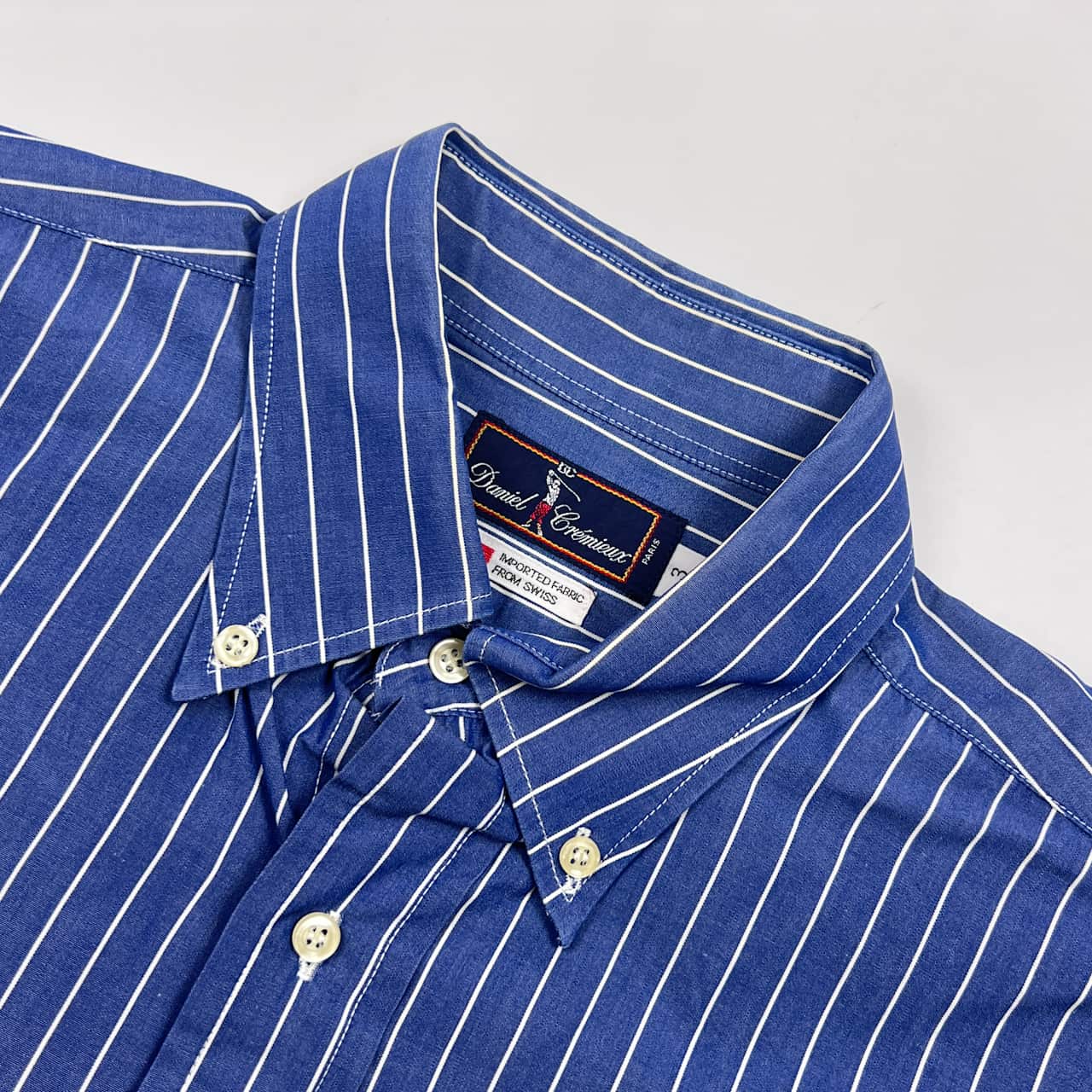 フランス製 Daniel Cremieux PARIS ダニエルクレミュ ストライプ BD ボタンダウン 長袖シャツ 3/ブルー メンズ