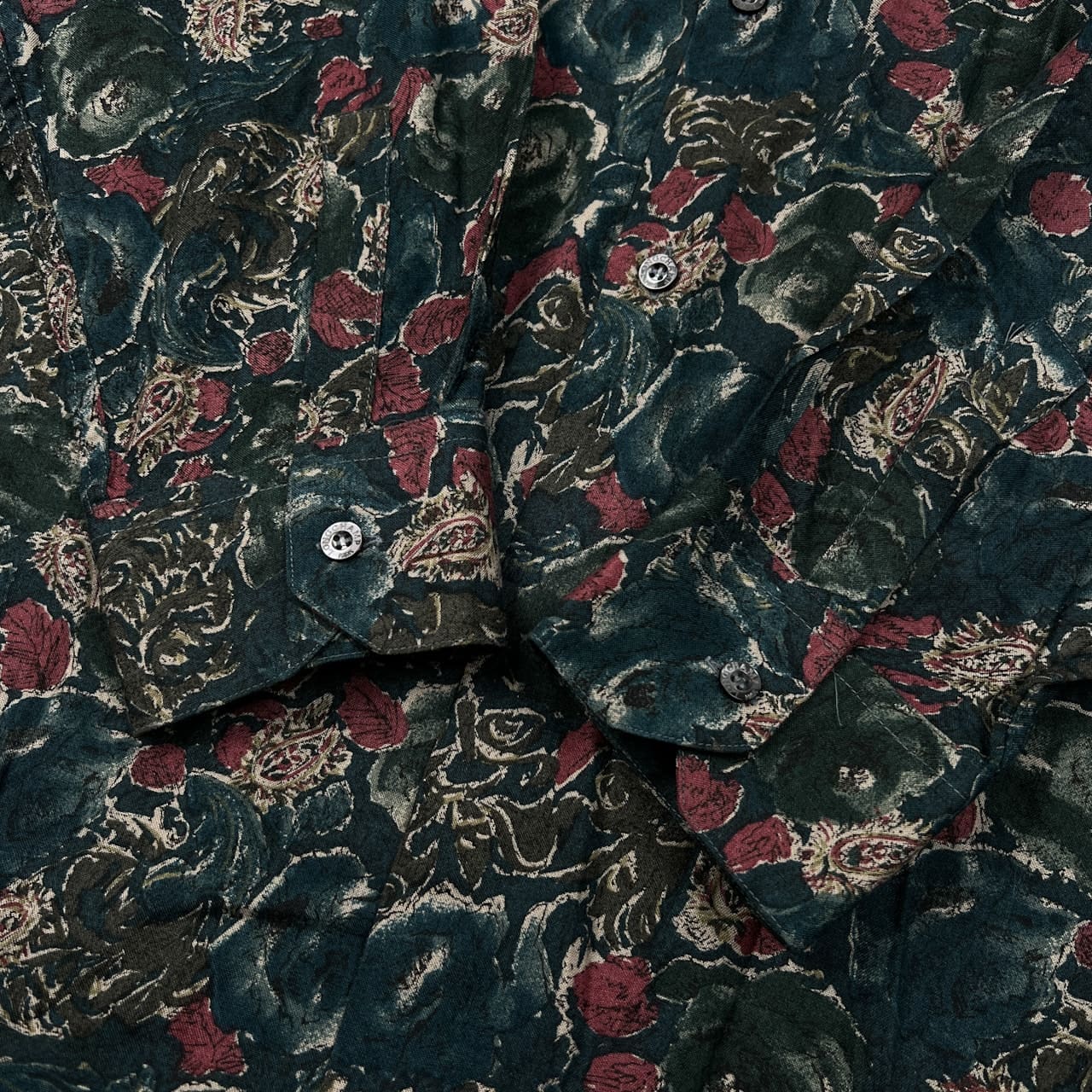 イタリア製 LONGCHAMP PARIS ロンシャン パリス 総柄 長袖 ビスコース シャツ サイズ M /グリーン系/ビンテージ/オールド